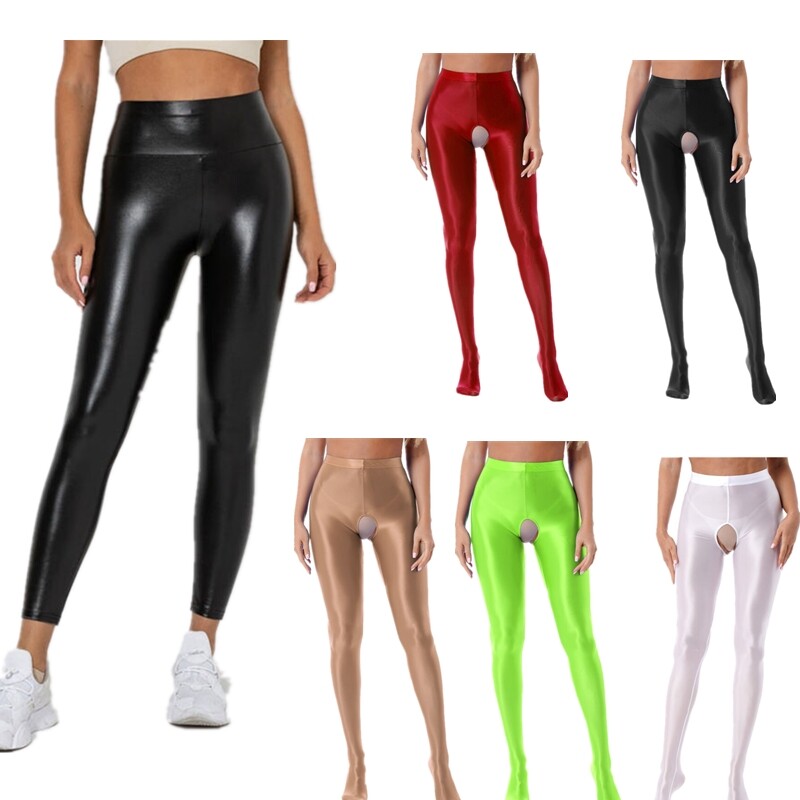 Womens Wet Look High Waist Cutout Leggings Crotchless Open Butt Patent Leather Skinny Pants.
