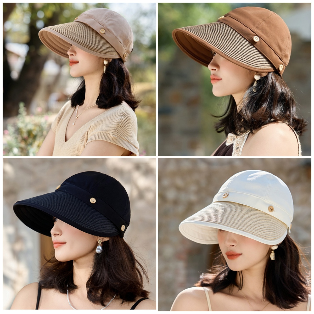 Summer Women Wide Brim Hat Sun Visor Fashion Hats Adjustable Sun Protection Cap