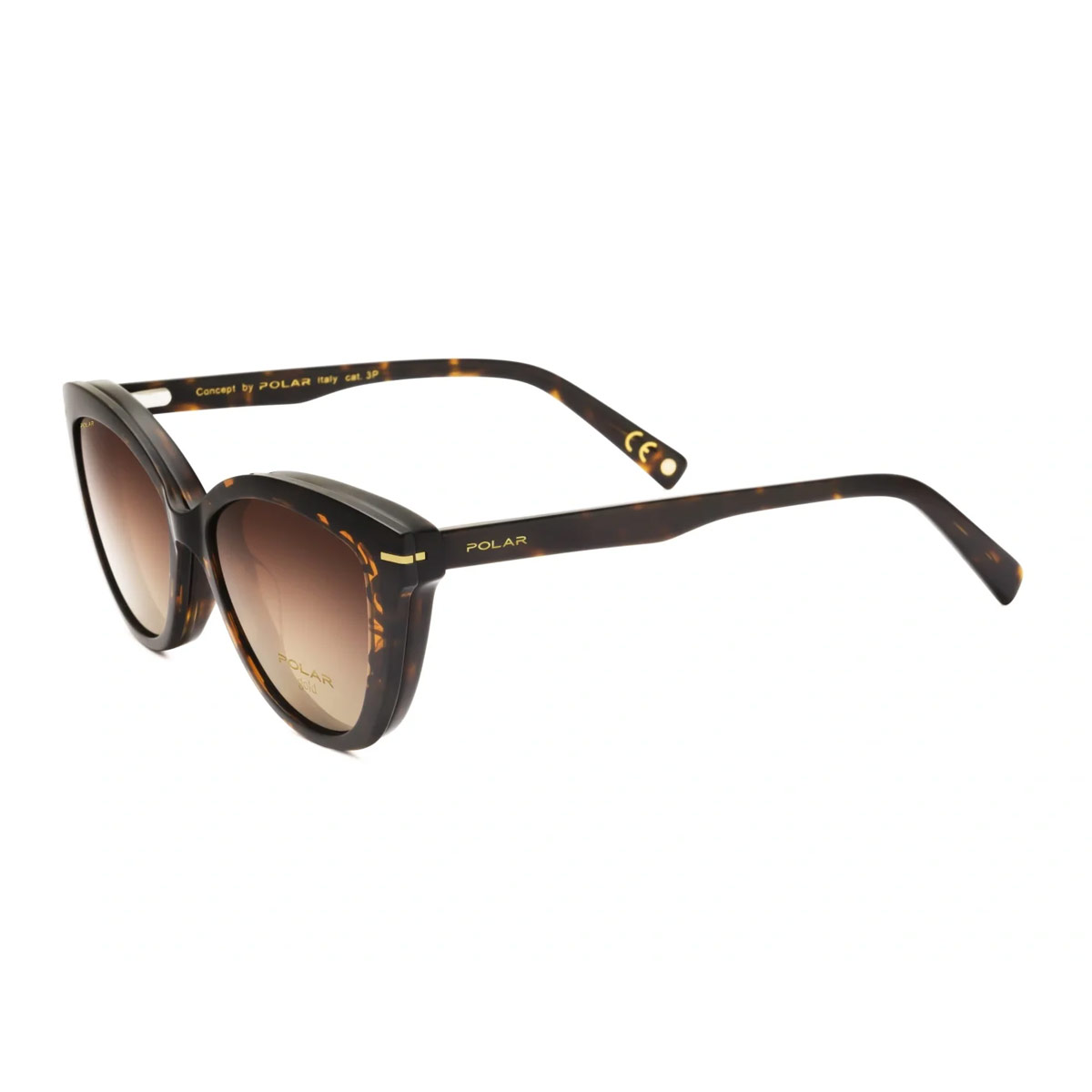 Occhiali da Vista Polar Gold C04-428 Clip On Polarizzati. Montatura havana lucido e lenti demo. Clip con lenti marrone/rosa sfumato polarizzate.