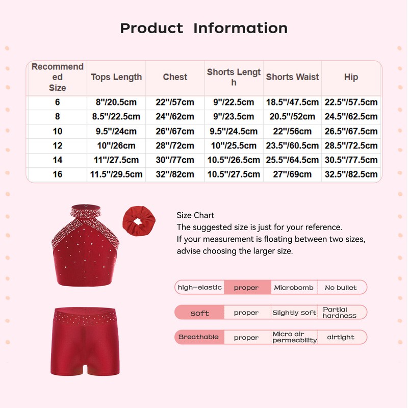 Elastic waistband shorts with shiny rhinestones to better fit your child’s body shape. Come with a hair band.