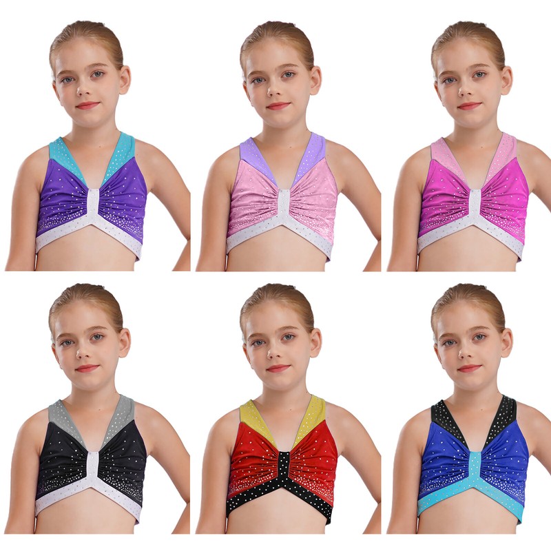 Girl’s top is decorated with sparkling rhinestones to make your girl eye-catching in the crowd.