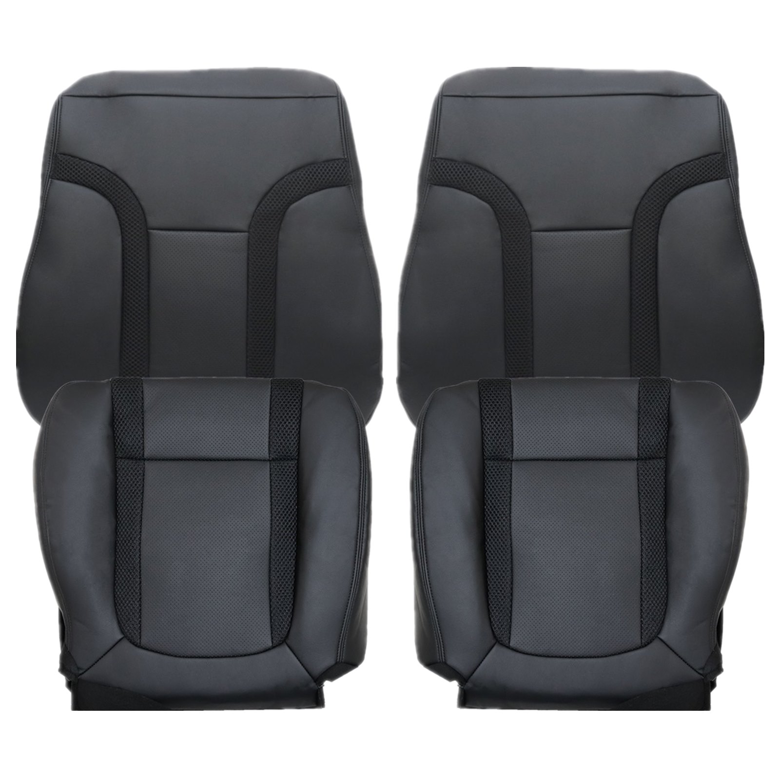 Name: Driver & Passenger Side Bottom & Top Replacement Perforated Leather Seat Cover Black