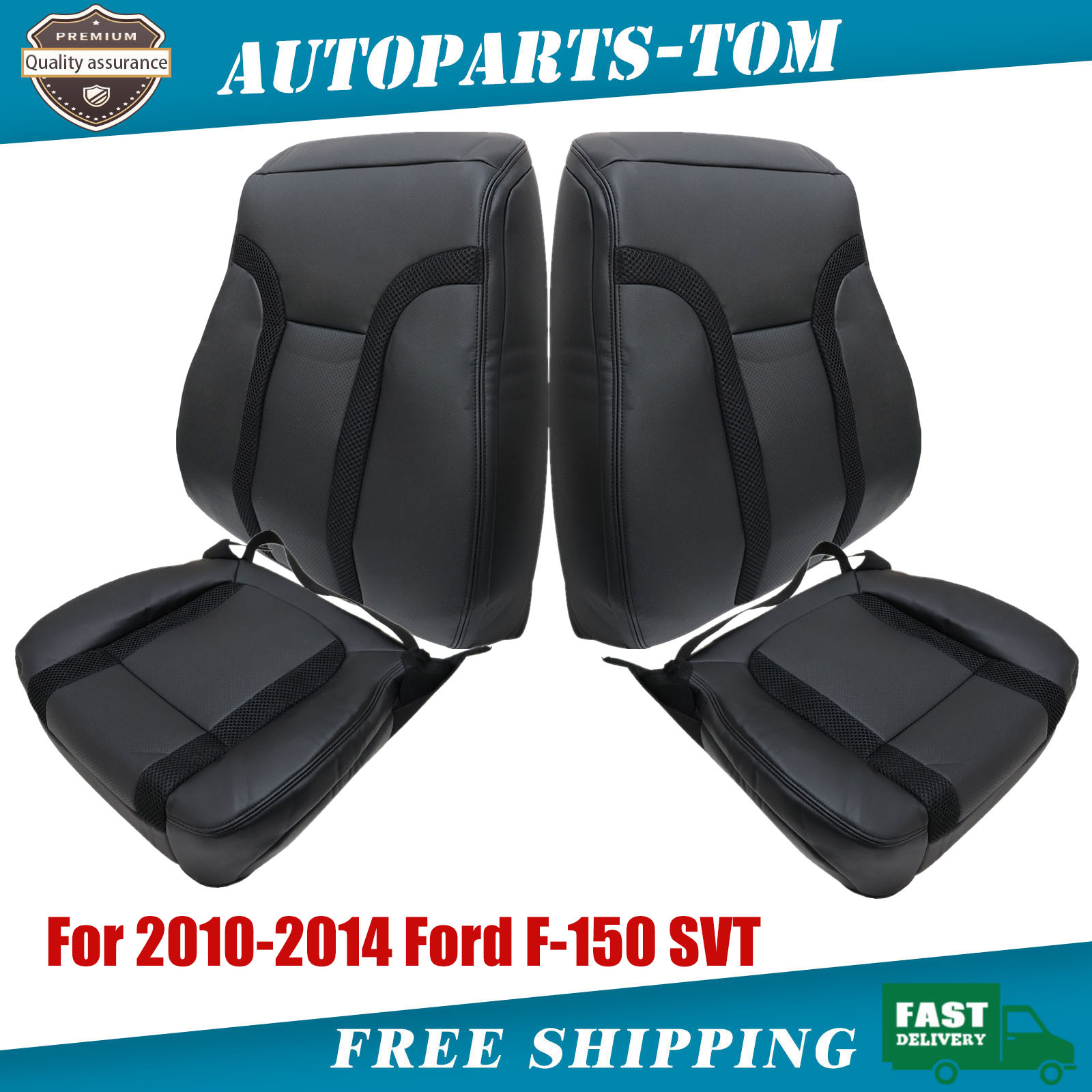 For 2010-2014 Ford F-150 SVT Driver & Passenger Side Bottom & Top Replacement Perforated Leather Seat Cover Black
