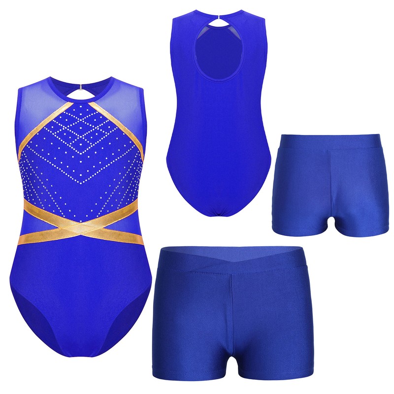Sleeveless leotard for girls, keyhole back and round neck with a clasp for easy wearing and taking off.