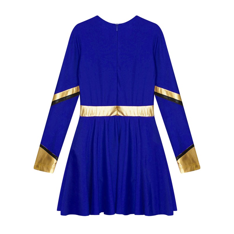 V neck long sleeve dance dress with invisible zipper closure on the back for easy wearing and taking off.