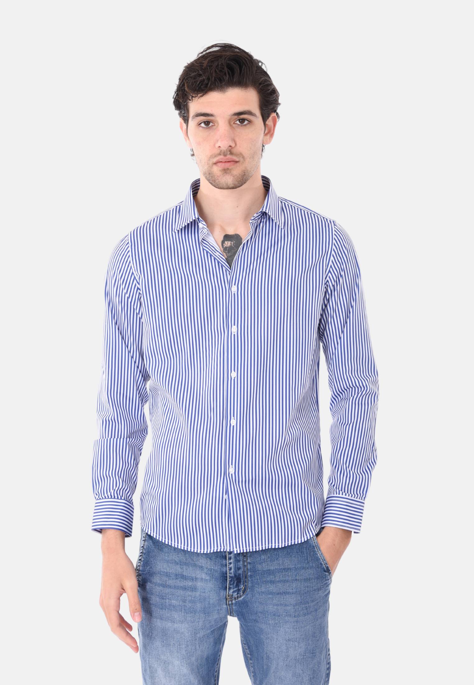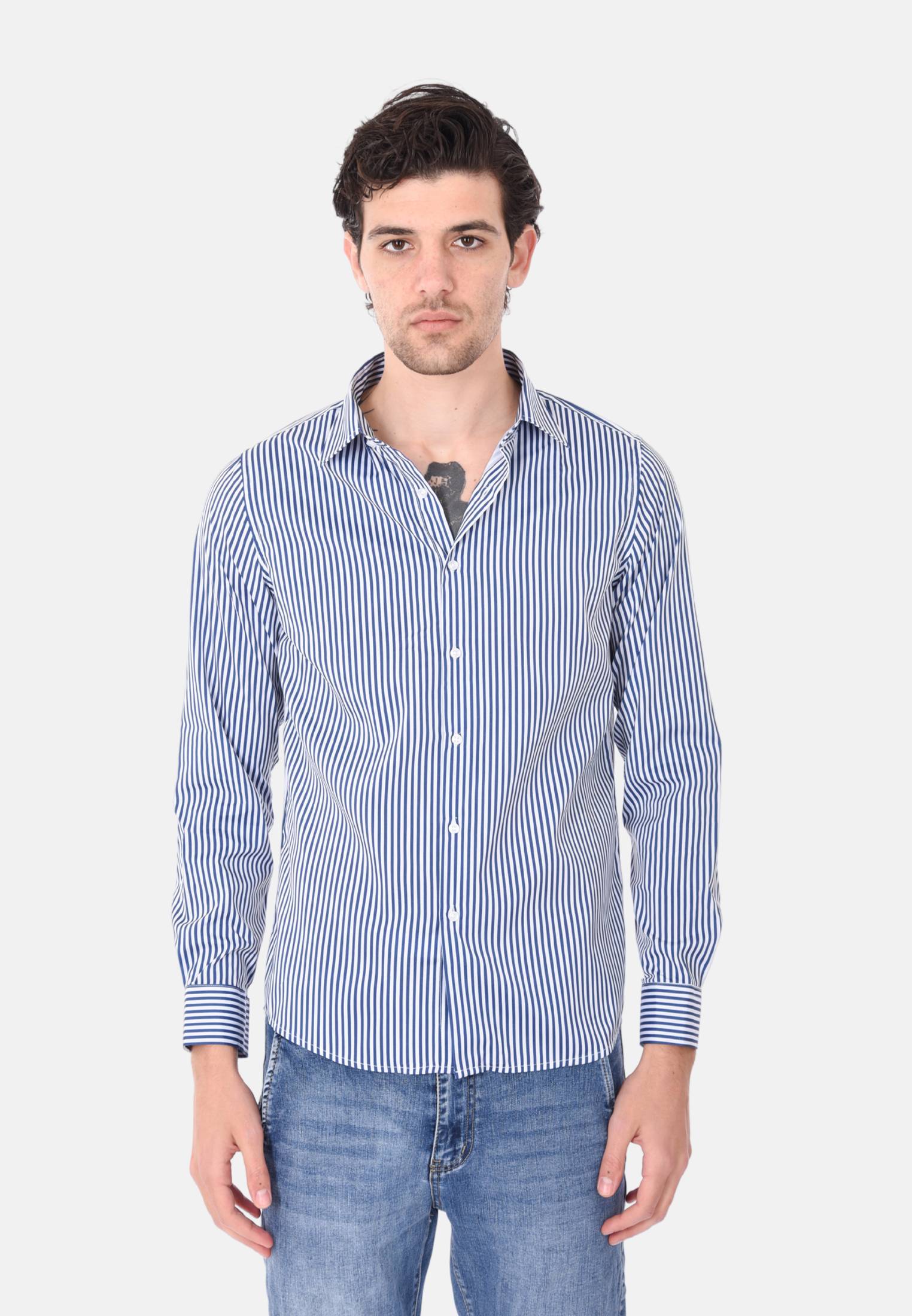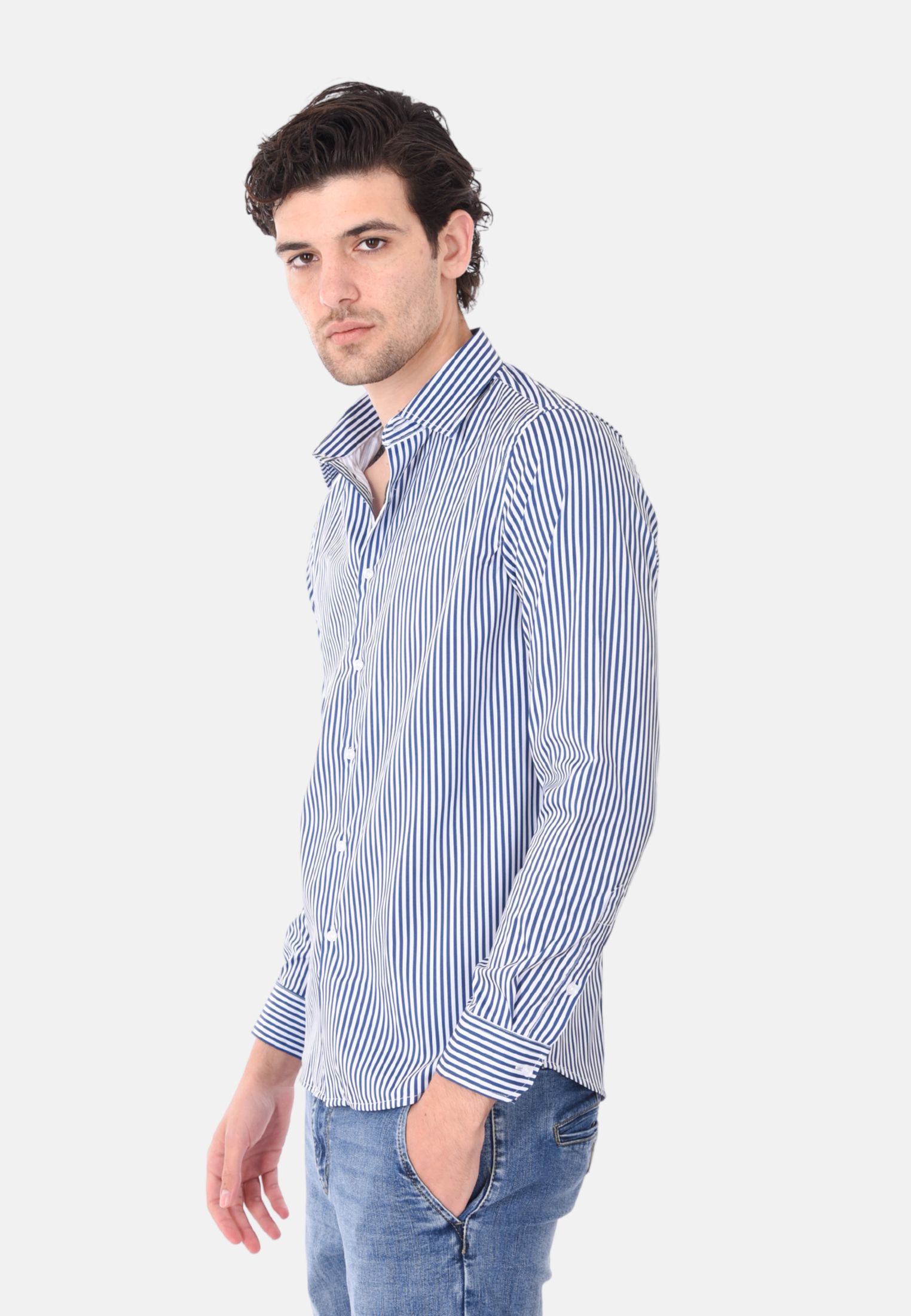 Camicia Uomo Slim Cotone Fantasia Righe Strette Camicie Collo Classico Elegante