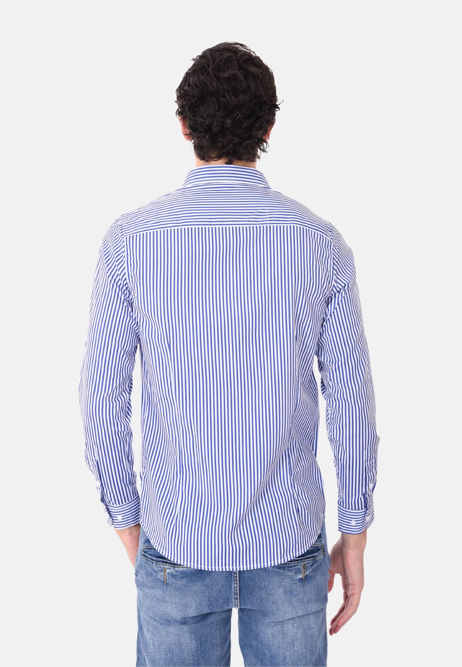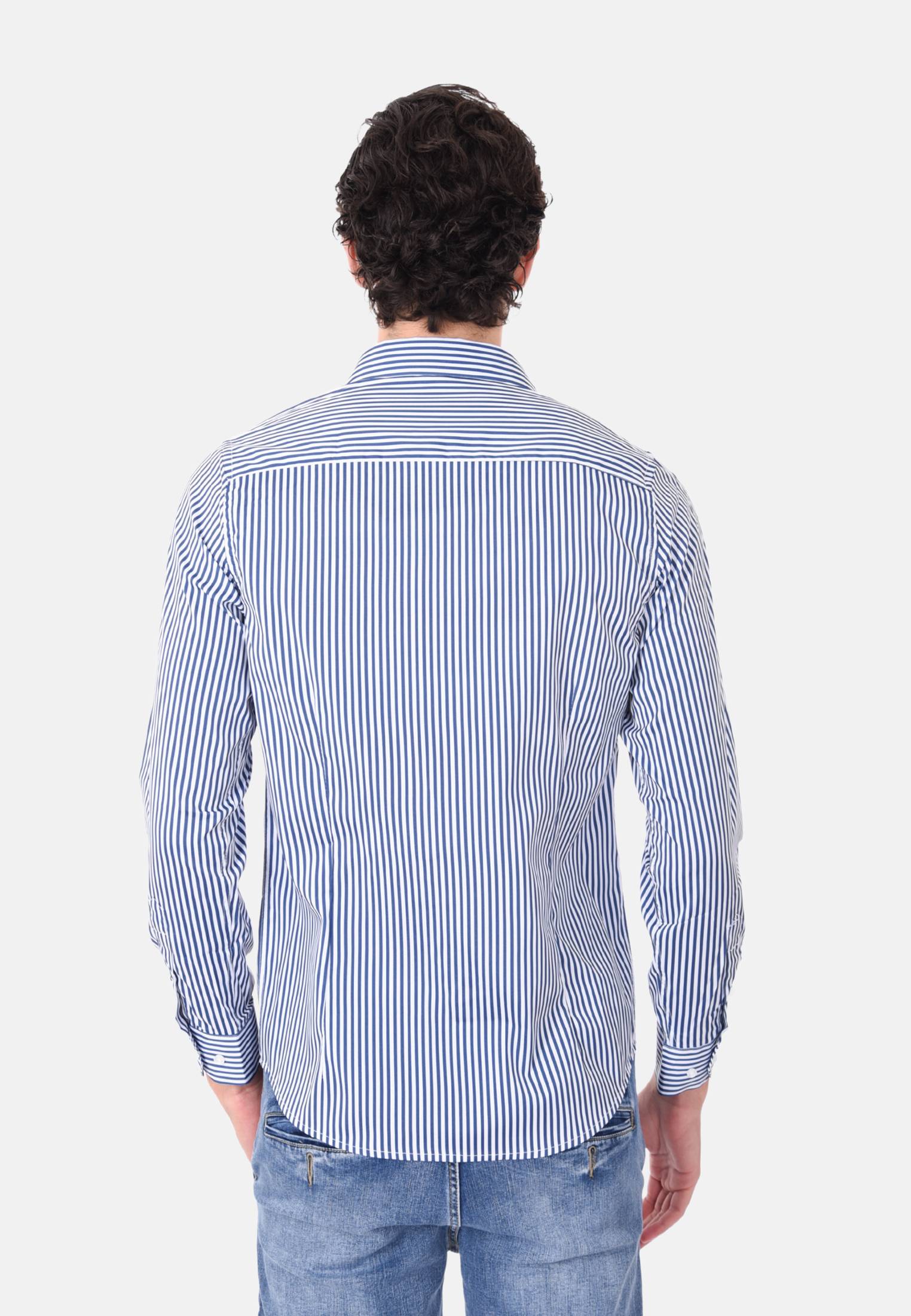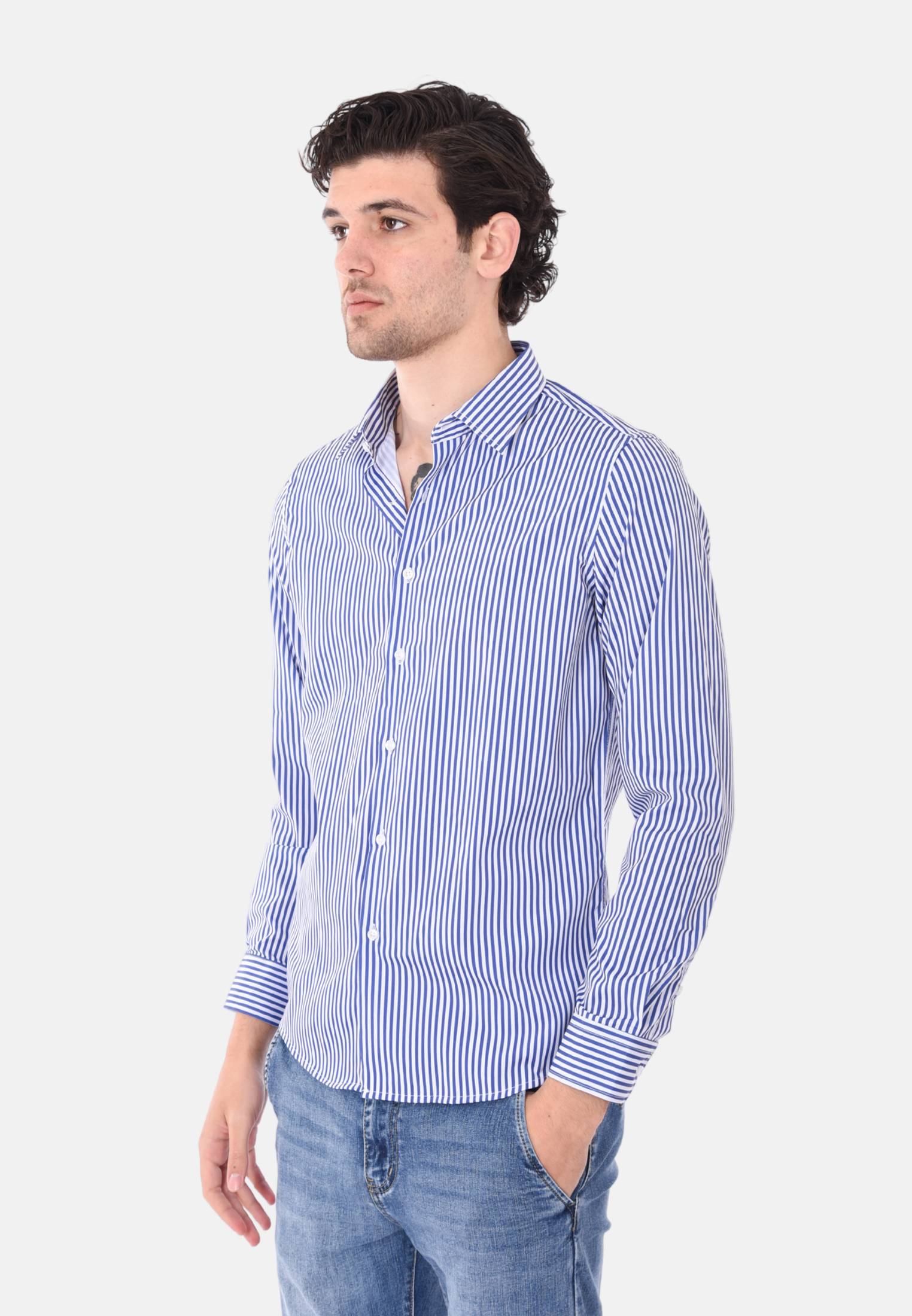 Camicia Uomo Slim Cotone Fantasia Righe Strette Camicie Collo Classico Elegante