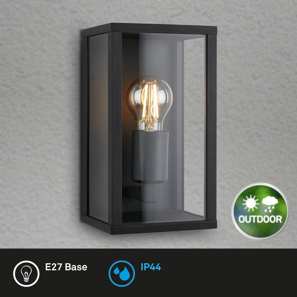 Outdoor light, 1 flame I metal-glass / black I excl. 1 x E27 max. 12W I without bulb I IP44 I 260x140x135mm (LxBxH)