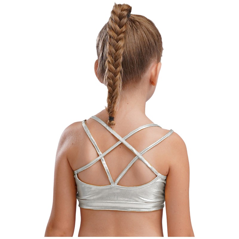 Girl’s camisole and shorts set with metallic appearance is eye-catching enough to make your child the spotlight in any performance.