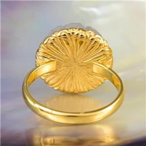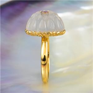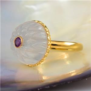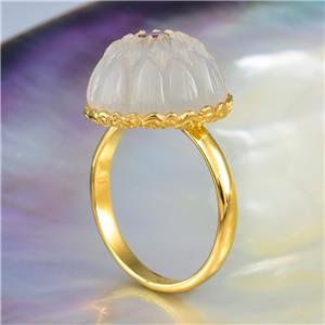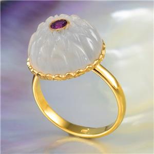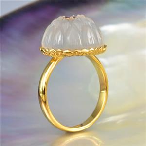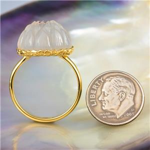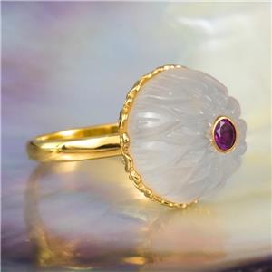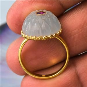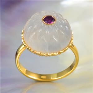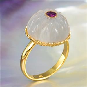 Anillo de loto Chalcedonía blanca tallada, 18k Gold Vermeil sobre Sterling Silver & Rhodolite