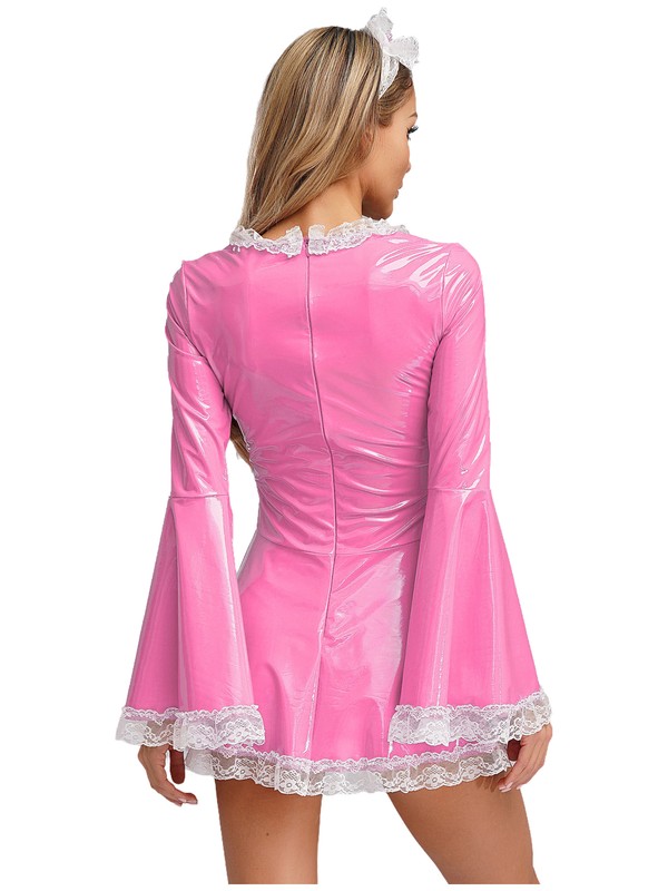 PU leather brings a wet look with unique luster, adding endlessly charm, dressing up you as an adorable maid.