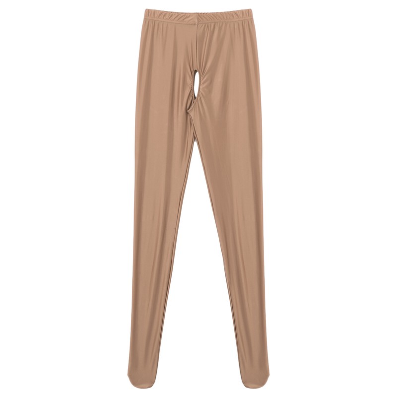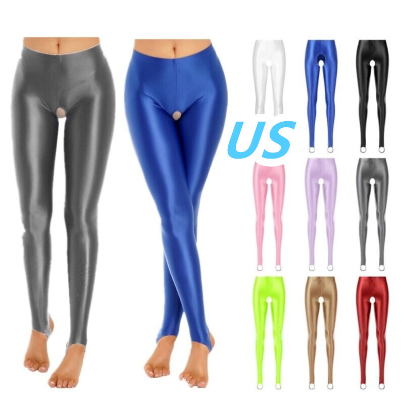 Womens Glossy Crotchless Pantyhose High Waist Elastic Waistband Leggings Nightwear.