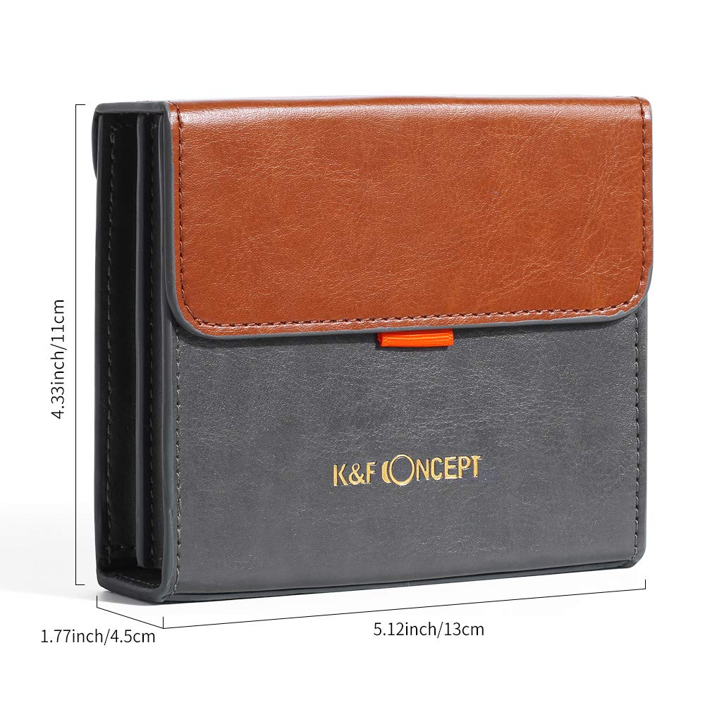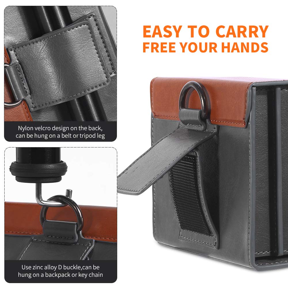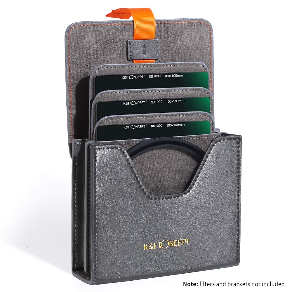 DURABLE: Made of high-quality wear-resistant and durable leather, it has excellent waterproof performance and is sturdy enough to use for a long time. CAPACITY: Fits 3 pieces 100x100mm square or rectangular filters and 1 filter holder. NOTE: Filter is NOT included. PULL-OUT DESIGN: The pull-out design can help you take out or put into your filters quickly, and it can also protect your filters and accessories from dust. SOFT AND SAFE: Provide a separate and safe room to organize your filters and hold your filters safely the faux leather lining is delicate and soft to protect the lens and bracket from scratches. EASY TO CARRY: You will have 2 ways to carry it: use nylon Velcro to wear it on a belt, or use zinc alloy D buckle to hold it on a backpack or other objects. Specification:
