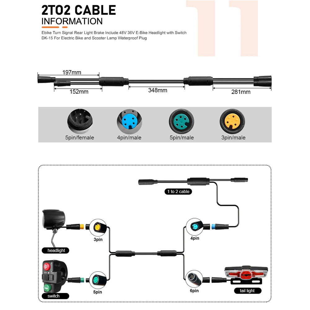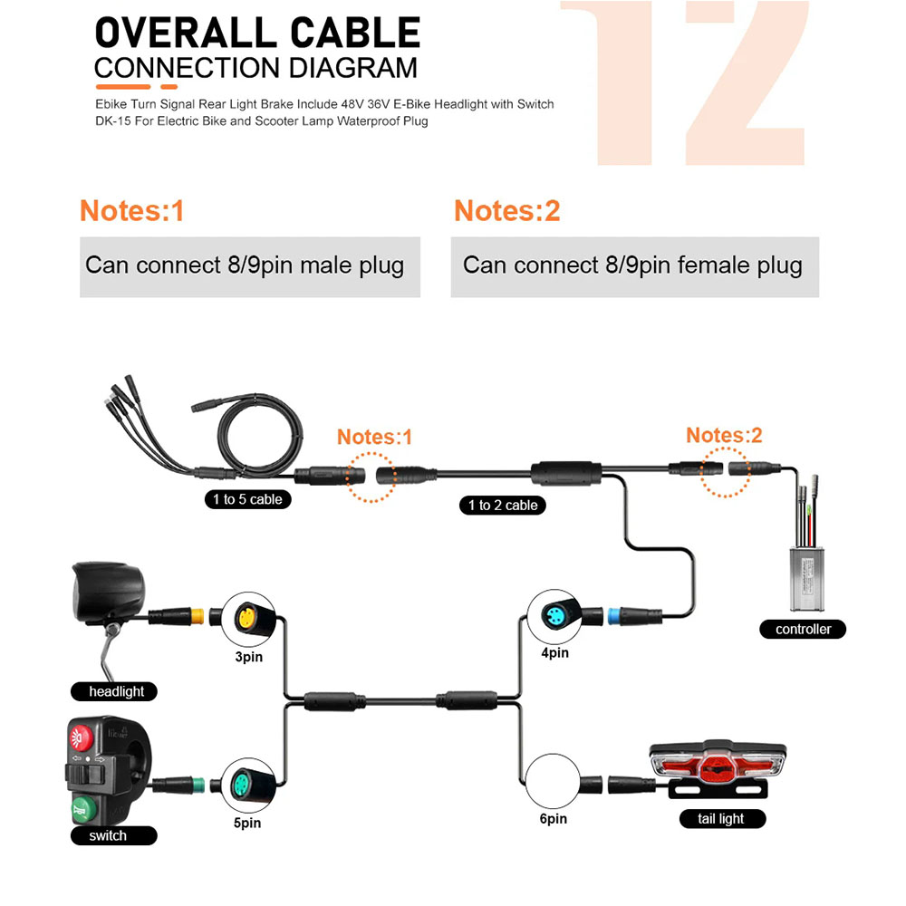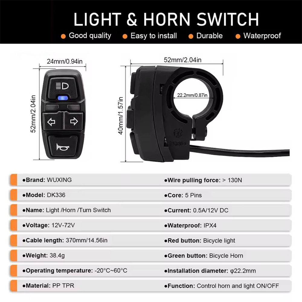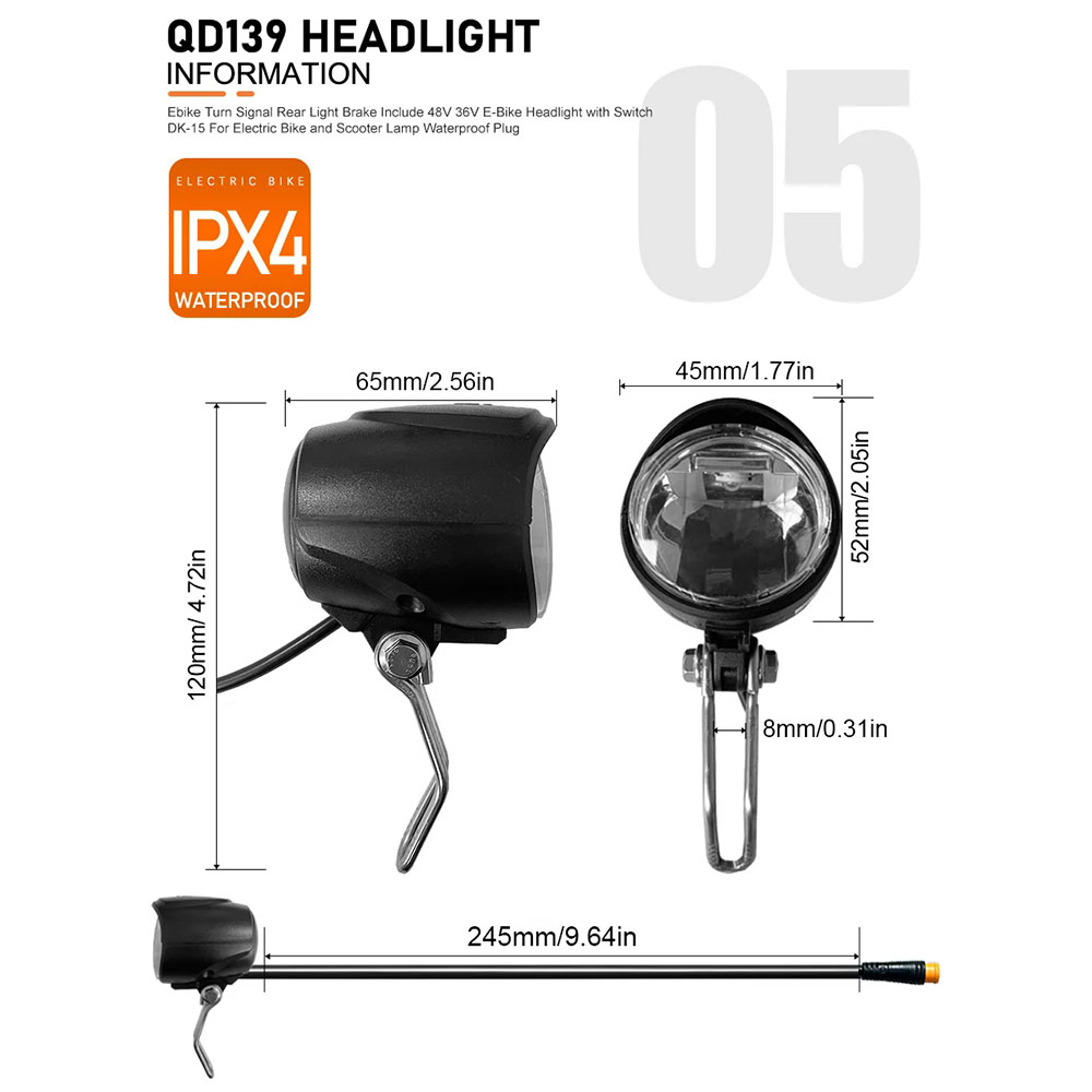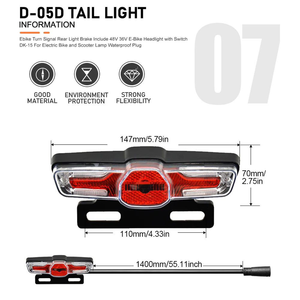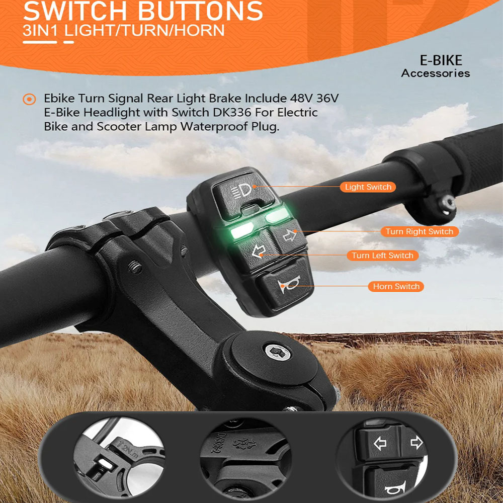 3.36V-48V Ebike Frontlight+Tail Rear Light LED Electric Bicycle With Switch