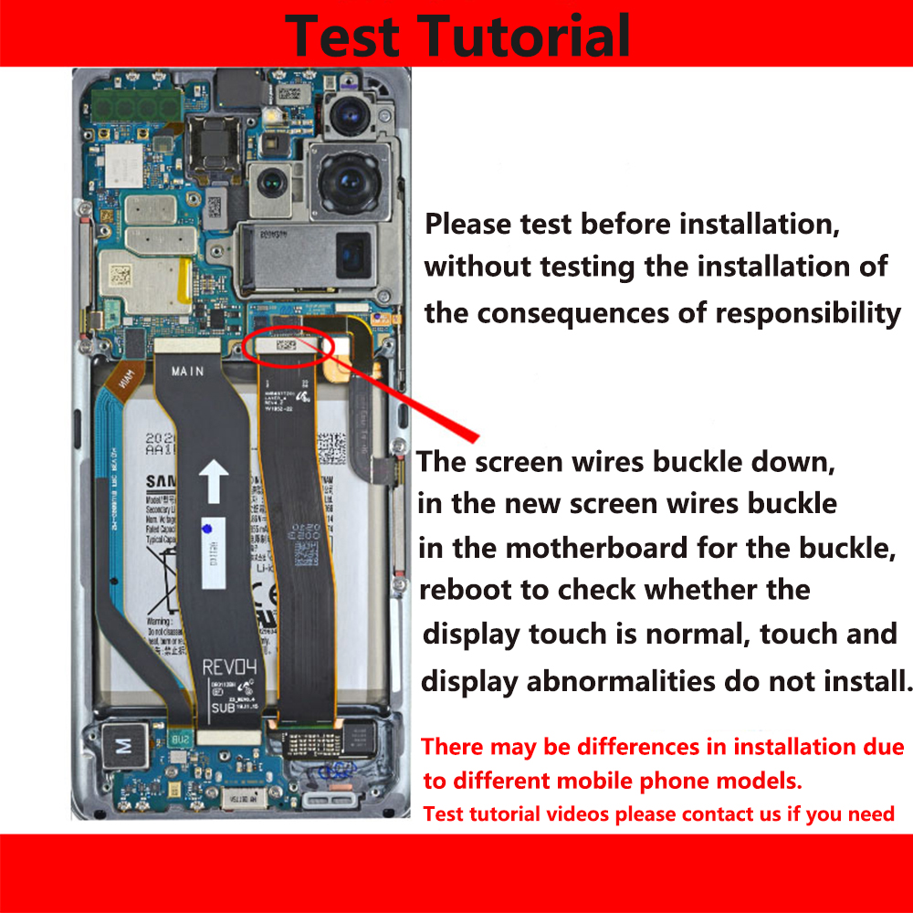After receiving the goods, please bare metal test, that is, take the phone apart, motherboard + battery, socket connected to the new screen, boot, display normal, test normal before installation. Please be sure to test the machine first. Make sure there is no problem with the quality, and then install the phone. (The reason for this is afraid of customers in the installation of the white process of their own damage to the LCD are not aware of) such as does not show, please contact us in a timely manner, do not force the installation of the mobile phone inside the test, if the installation of the mobile phone inside the liquid crystal only to inform the damage.