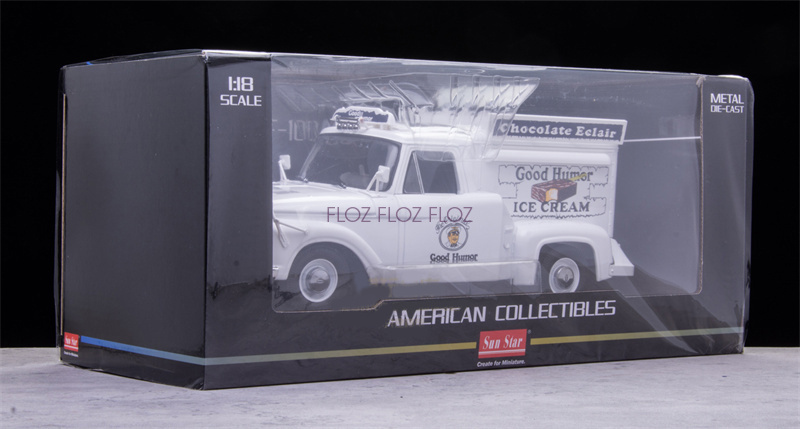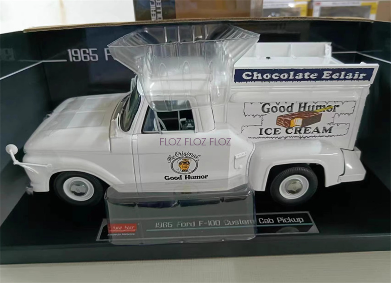 for Sun Star for Ford Pickup for F100 for Good Humor Ice Cream Truck 1965 White 1:18 Truck Pre-built Model