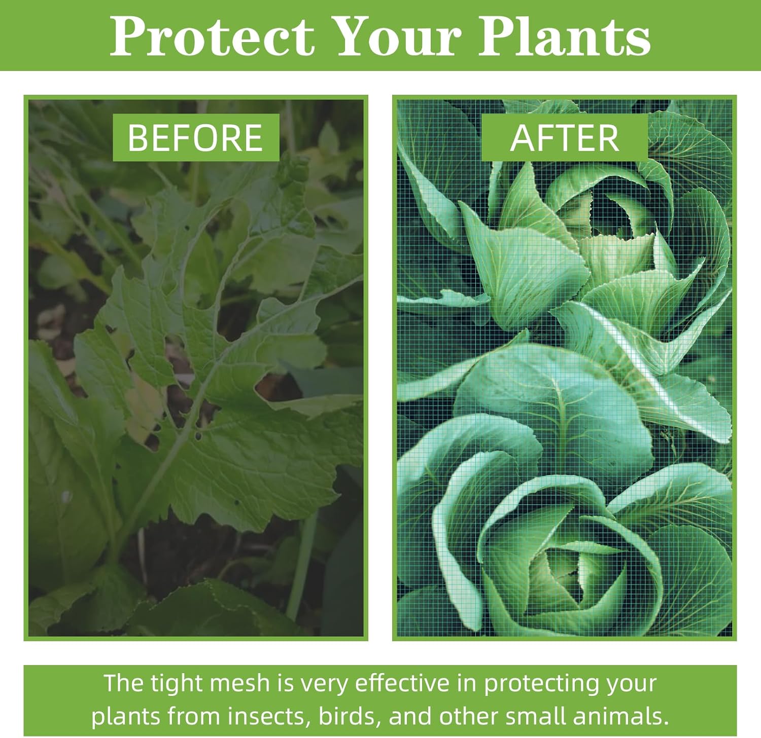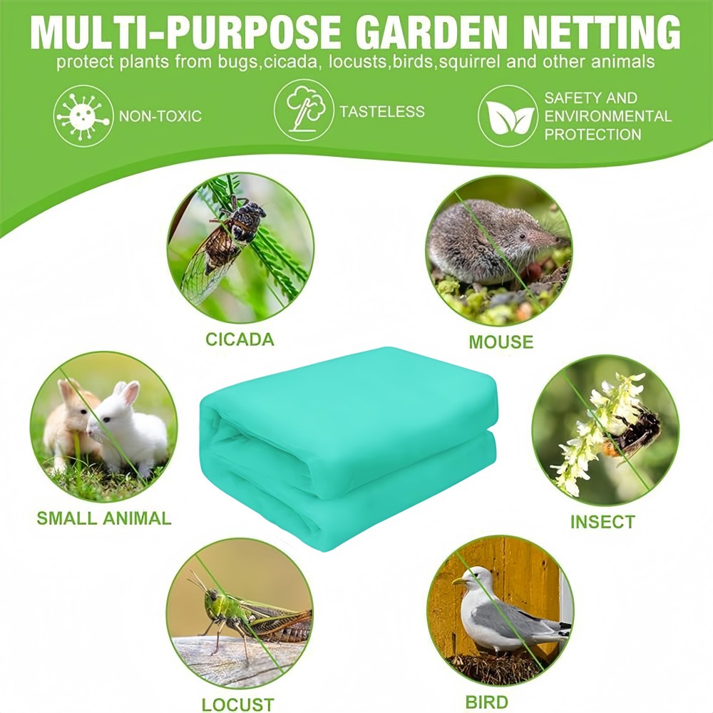 COMPREHENSIVE PROTECTION: Insect netting for garden can safe and effective barrier against many types of pests, including insects, moths, cicada, bugs, mosquitoes, and birds & other small animals; Protect your plants, trees, flowers, vegetables and fruits, making it as perfect choice for plants to germinate, blossom and bear fruit