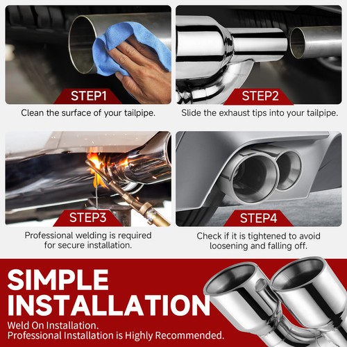 Product Material: The exhaust tip is made of stainless steel, bining the corrosion resistance, high strength, and high temperature tolerance of stainless steel with the lightweight strength, good thermal stability. This provides exceptional performance and durability for the exhaust system. Unique Exterior: The intricate details are unforgettable. Adorn your vehicle, instantly igniting a passion for sports and demonstrating a love for quality life. Every drive is an exploration of beauty, making your car shine brightly on the road.