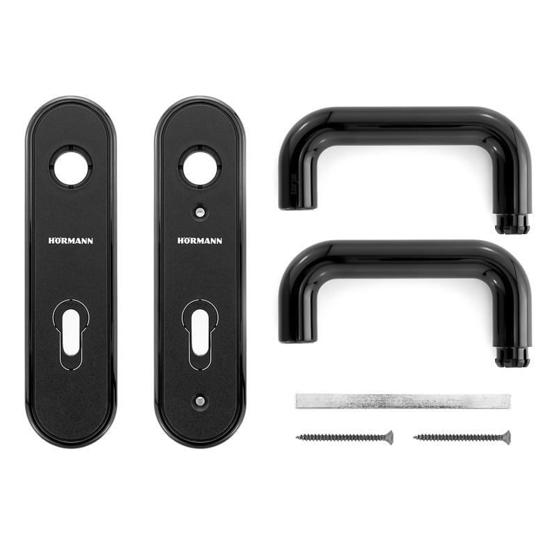 Die Hörmann Drückergarnitur können Sie an alle Hörmann ZK- oder Hörmann OIT Innen-/Mehrzwecktüren anbringen. Aus langlebigem Polypropylen gefertigt, eignet sich die robuste, mit beidseitigem Drücker und abgerundetem Kurzschild ausgestattete Garnitur für den Außen- oder Inn ...