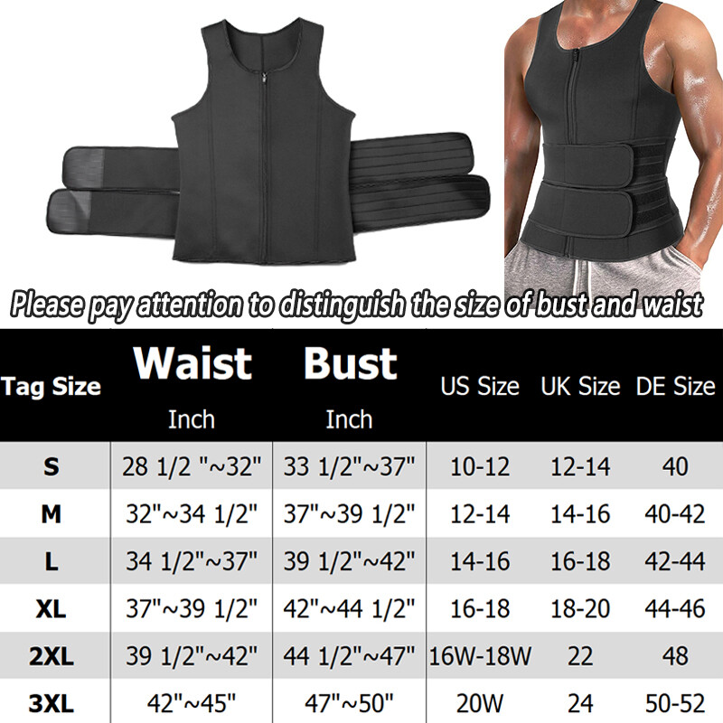 Feature · Color: Black · Material: Polyester&Neoprene&Nylon · Size: S,M,L,XL,2XL,3XL · LIGHT WEIGHT UNDERSHIRT -- Highly-elastic fibre which insures men suit shirt won't hurt your skin partially during running, jogging, hiking,offering excellent comfort and full range of movement, extremely breathable,heat absorbing and sweat releasing. · FAT BURNING ASSISTANT -- Our tank shirt is specifically designed to reduce the appearance of Gynecomastia ,hide "man boobs",deal with "beer belly".Breathable for improving blood circulation and fat burning, and strongly chest shaping while workout or gym. · HIDDEN & SLIM BODY SHAPER -- High quality polyester will perfectly snug fit your body,the comfort yet practical design of our mens slimming compression undershirt provide immediate slimming effect while wearing it underneath all types of clothing,such as workout shirts, t-shirts, sweaters and formal dress shirts,you will almost forget wearing sports vest. · SWEAT ACTIVEWEAR -- Our shaper vest uses a heat-trapping neoprene fabric to boost your natural body heat and stimulate sweating with any type of physical activity. Wearing Sweat Shaper while working out or while performing daily activities, or even at work, creates a hot sauna-like experience. · COMPRESS & INSTANTLY ABDOMEN SLIM -- This compression shirt works well with putting the loose skin in a tight firm place which helps you get rid of unwanted fat rolls, lumps and muffin tops without causing any discomfort, flattening your chest and abdomen. · POSTURE & BACK SUPPORT -- Men's tight body shaper, ligher thermal abdominal compression and lumbar support to help posture for back and abs as you workout.So that you'll have a firmer posture,higher back support. · SUITABLE OCCATION -- This male gym muscle shirt best for zumba, yoga, gym, fitness, running, cycling and much more sports,fat burn and lose weight and body building, reduce your belly size and enhance pressure on the belly, helps you have a nice body shape. Packing list · 1 x shaper vest for men