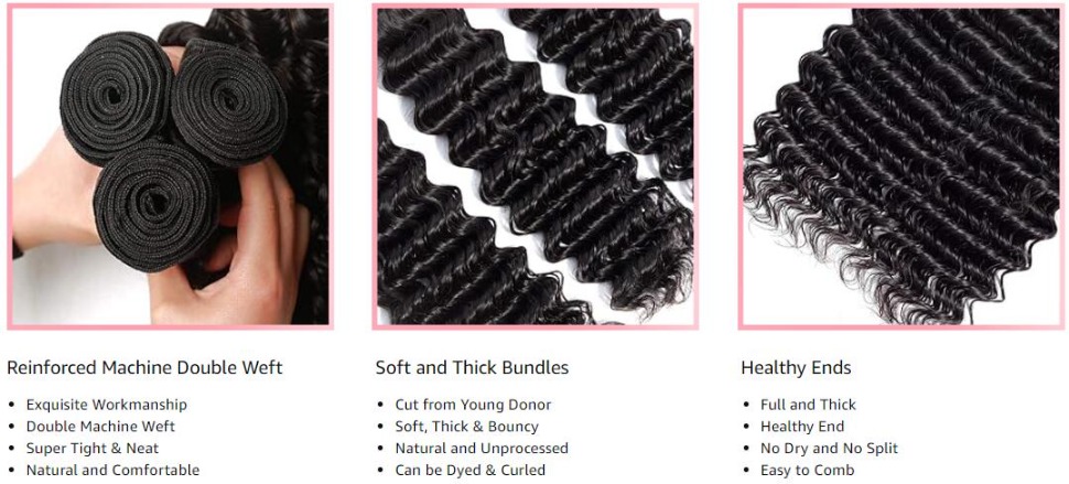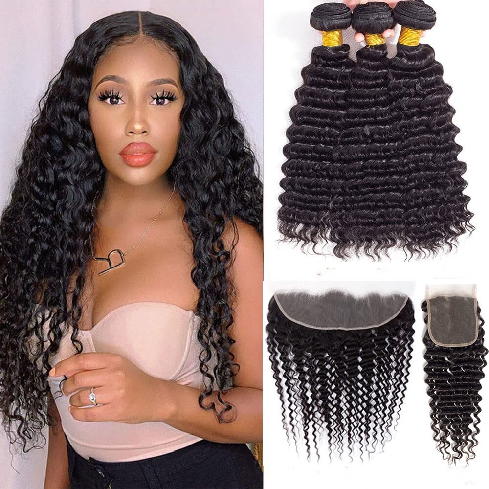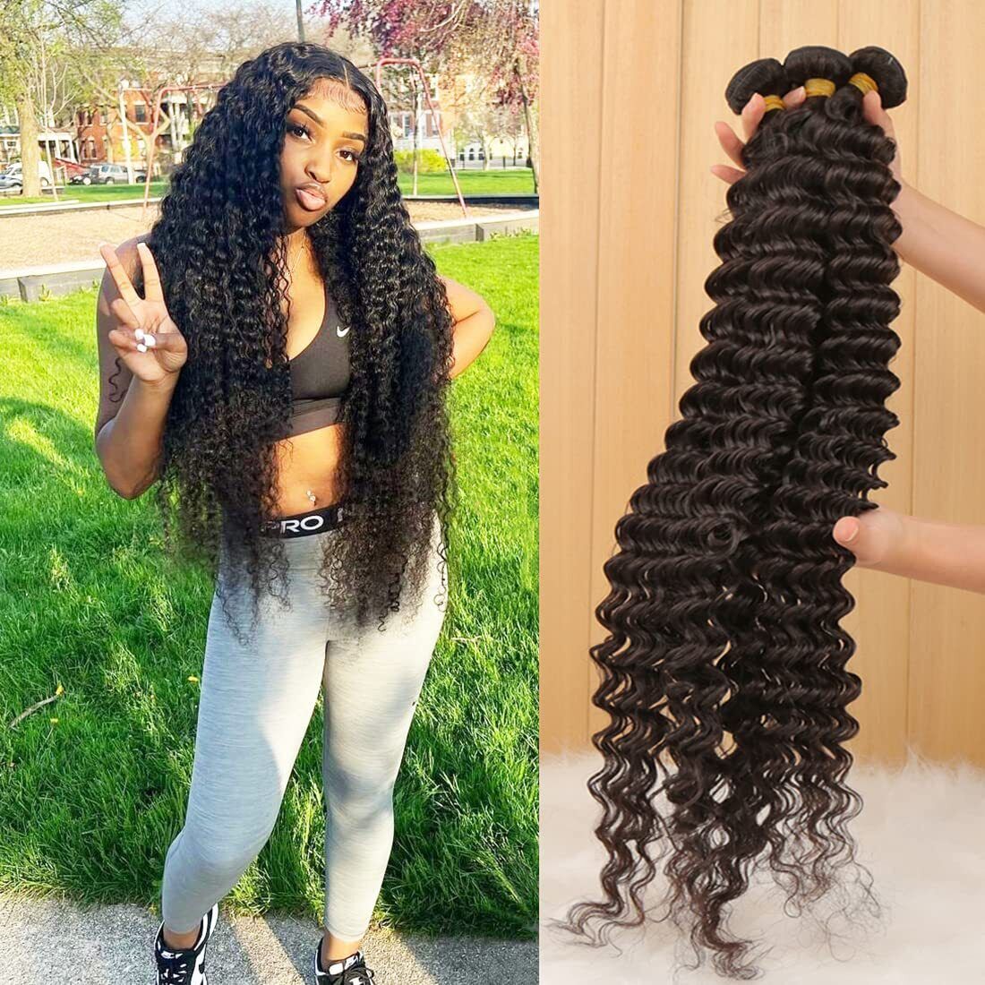 Deep Wave Human Hair Bundles with Closure Available,Please Click
