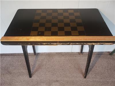 The item you are looking at is an antique wooden center-folding HOWE game table. This is a very rare table and there are not any others like it on e-bay at this time. It is 28" long, 16" wide, and 27" tall. Please see all photos for true details for color, size, and condition. I use tracking and delivery confirmation with all my items. All my items come from a smoke-free home and are shipped within 1 business day of payment. Subscribe to my store newsletter so you don't miss out on new arrivals! Please feel free to contact me with any questions you may have, or if you'd like to see more pics. Thank you for looking and have a great day!