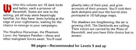 I am currently offering several Ravenloft items in my eBay store. Please click the lizard link to see more rare D&D and AD&D materials including campaign sourcebooks, modules, module sets, class guidebooks, compendiums and tomes. Multiple items purchased will be combined to save the buyer on shipping costs.