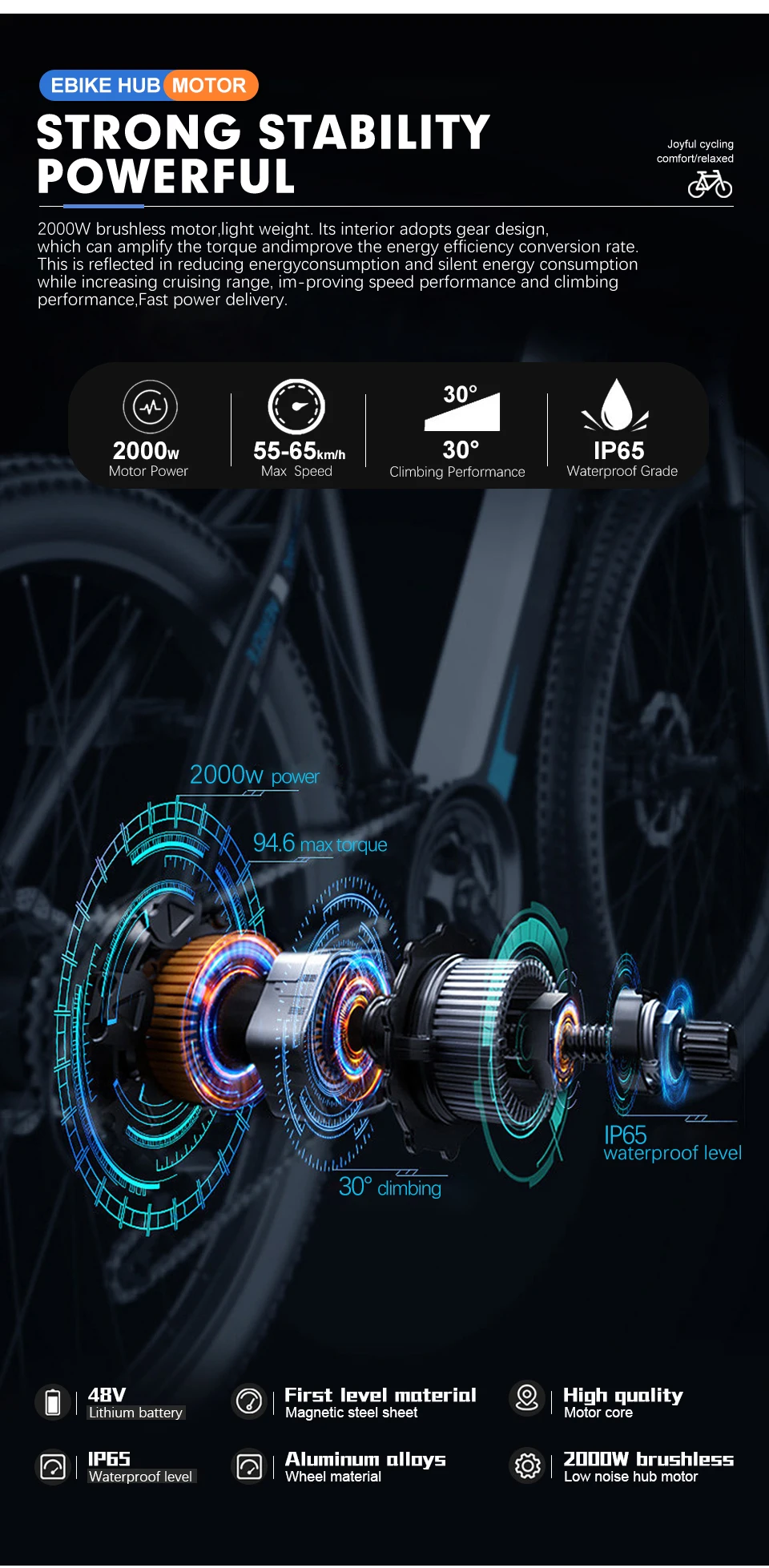 48V 2000W Front/Rear Hub Motor:
