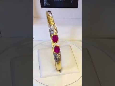 Elegant 2.70 Carats Round Brilliant Cut Diamonds Ruby Cuff Bracelet 14K Yellow Gold. The Perfect Gift for Every Occasion !!