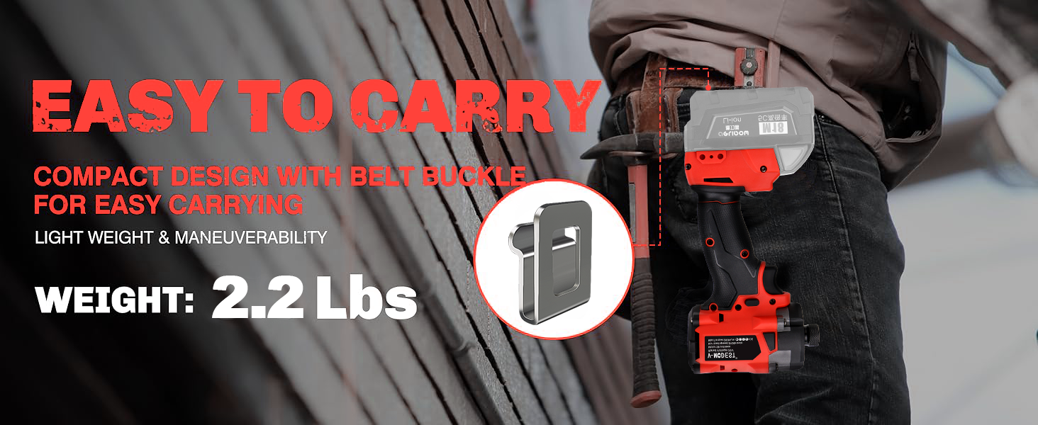 [COMPACT AND ERGONOMIC DESIGN] The V-MODEST small impact driver is lightweight at only 2.2 lbs, making it easier to use in tight spaces. The ergonomic handle with soft rubber grip greatly improves comfort. Easy carrying and storage with bit holder and belt clip, reduces arm strain. This compact impact driver works even better when used on framing, decking, cabinetry, etc. Built with all-metal gears, rubber over-mold grip, and IP56-rated dust/water resistance to withstand harsh job site conditions and ensure long-term reliability.