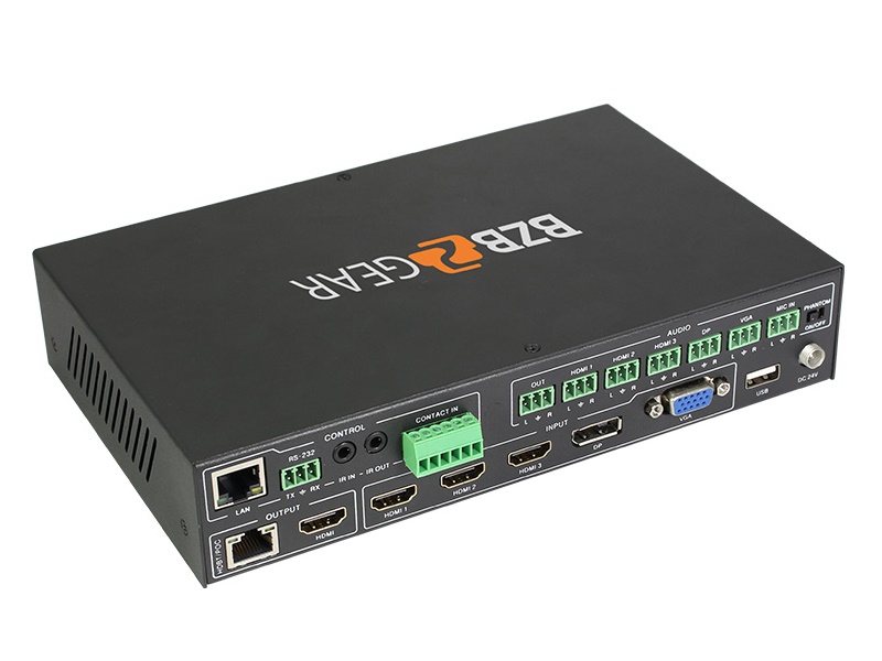 BZBGEAR BZ-SC-51UHD-HDBT 5x1 Multiformat 4K60 Presentation Switcher/Scaler w/HDMI/VGA/DP and HDBASET/HDMI Out