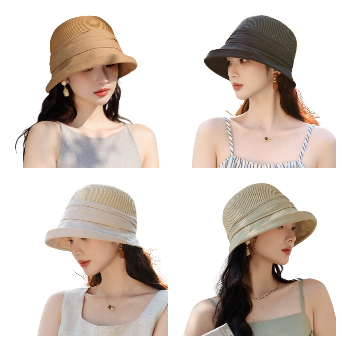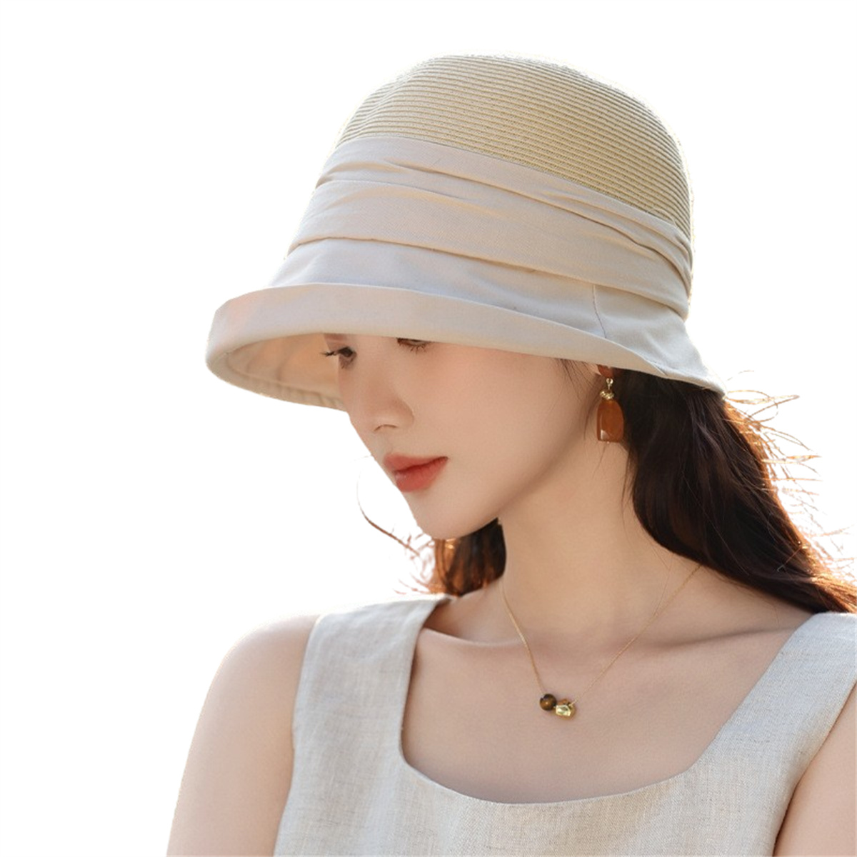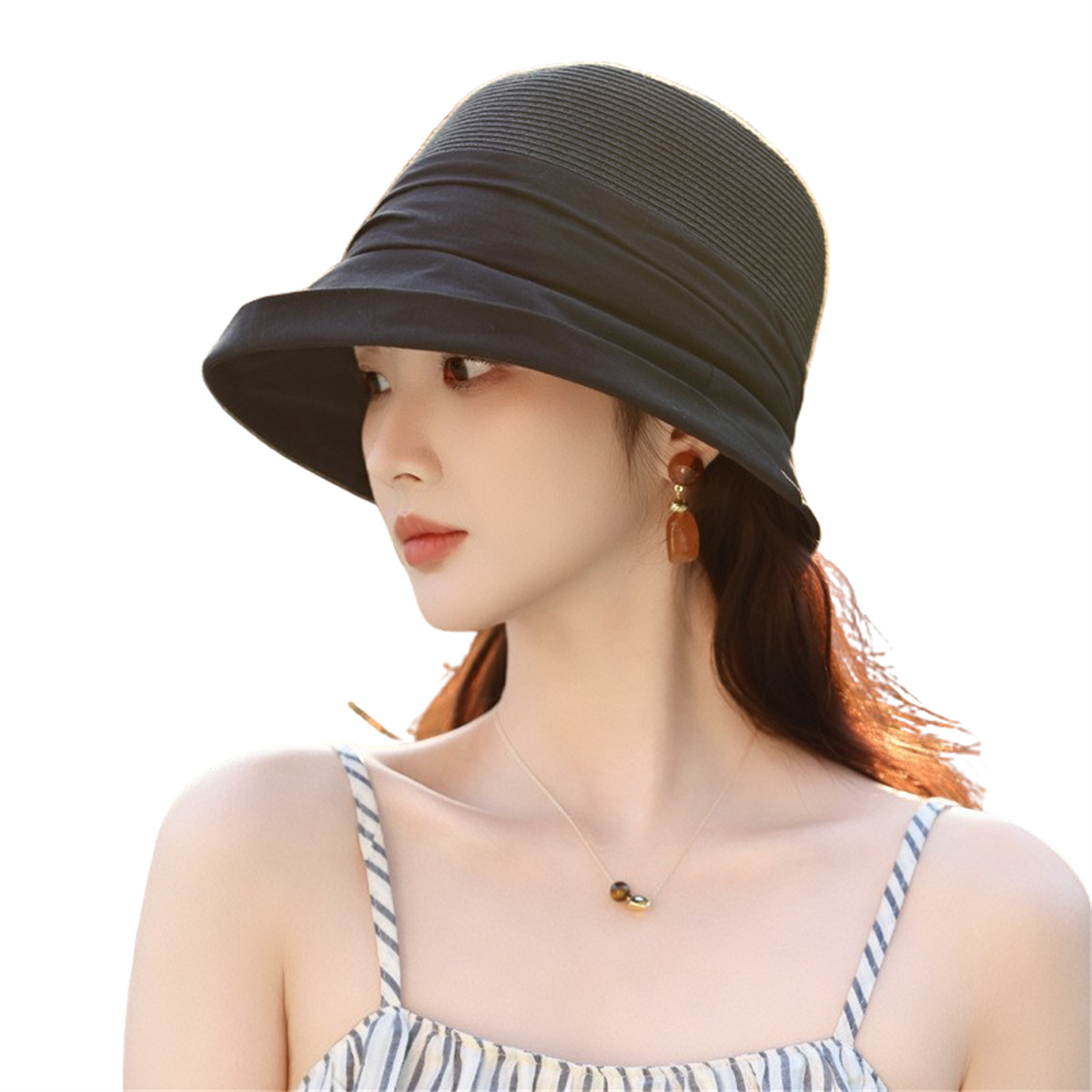 Women Wide Brim Summer Hat Bucket Travel Beach Sun Fashion Elegant Straw Hat