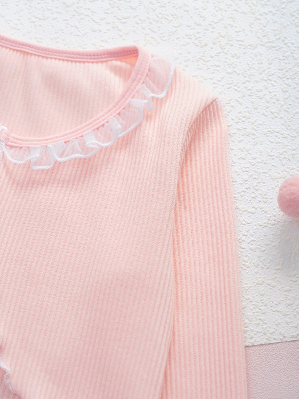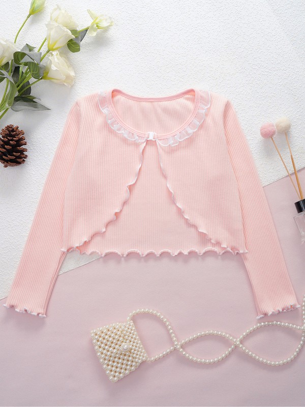 Werten Sie die Garderobe Ihrer kleinen Tochter mit dieser Strickjacke mit Spitzenbesatz auf, einer perfekten Mischung aus Stil und Komfort.