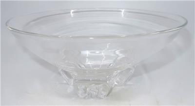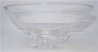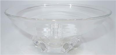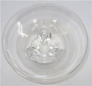 You have found the missing piece to your art glass collection! Here is a wonderfully charming candy bowl or dish from Steuben. A mid-century modern piece, designed by Donald Pollard, features three arch-shaped feet holding up the graceful round bowl. The Steuben signature is on the underside of the base. It measures 3 1/3" tall by 7 3/4" in diameter and is in excellent preowned condition. There are some fine scuff marks on the underside from use as shown in the photos. Please see our Not Just China Store for more Art Glass and other collectibles.