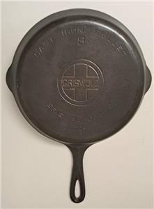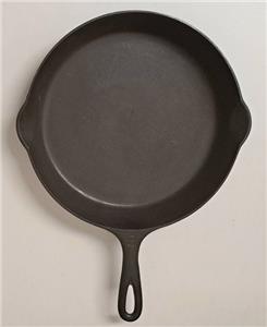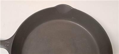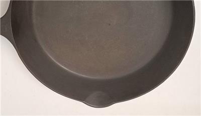 Condition: no pitting, chips or cracks, ever so slight wobble on glass surface, cleaned and seasoned, ready to use or display, see photos