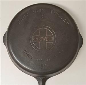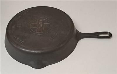 Marks: large logo in center and "Cast Iron Skillet 8" above and "Erie, Pa., U.S.A., 704 B" below