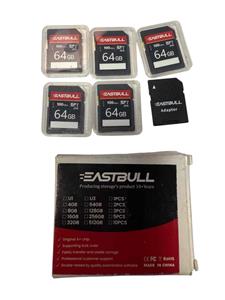 NEW EASTBULL 5 PIECES 64GB SD CARDS WITH ADAPTER.