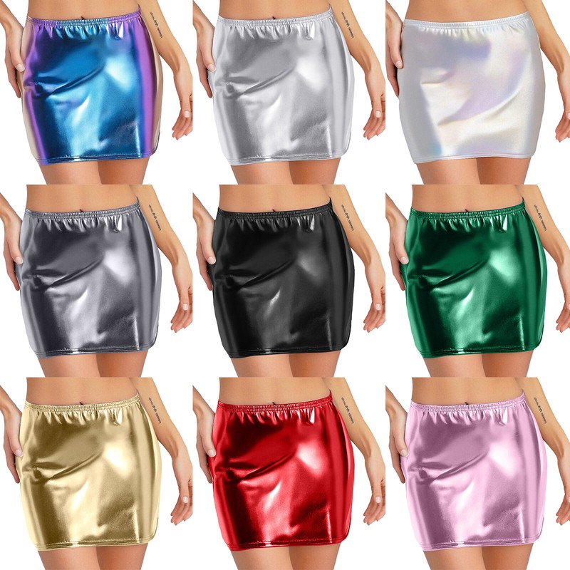 The metallic shiny finish gives the skirt a trendy and eye-catching look, making you stand out in the crowd and following the latest fashion trends.