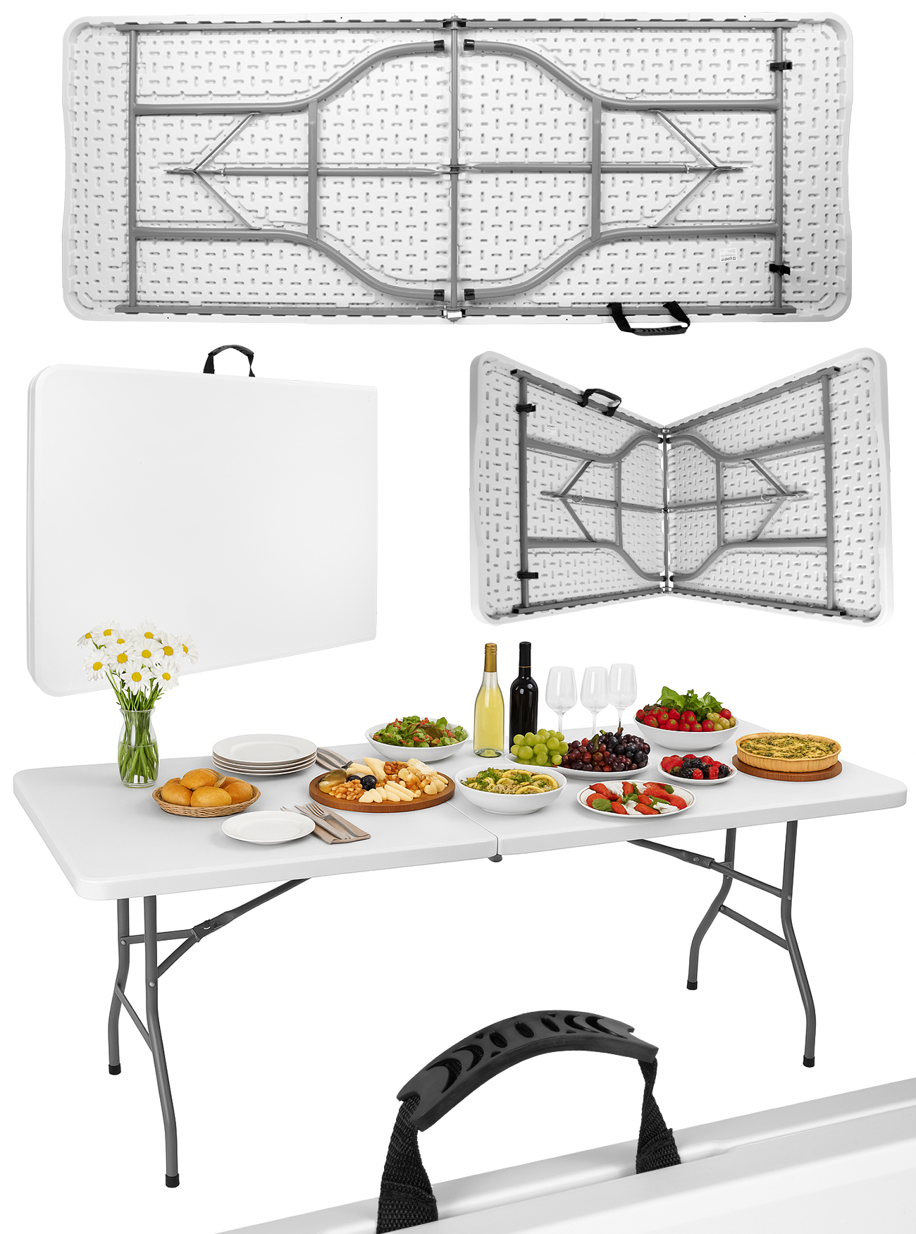 Mit dem praktischen Transportgriff lässt sich der Tisch bequem an jeden beliebigen Ort transportieren - zu einer Party, einem Picknick, einer Veranstaltung im Freien oder einem Bankett. Durch die faltbare Form des Koffers lässt er sich leicht transportieren und verstauen - auch auf kleinem Raum.