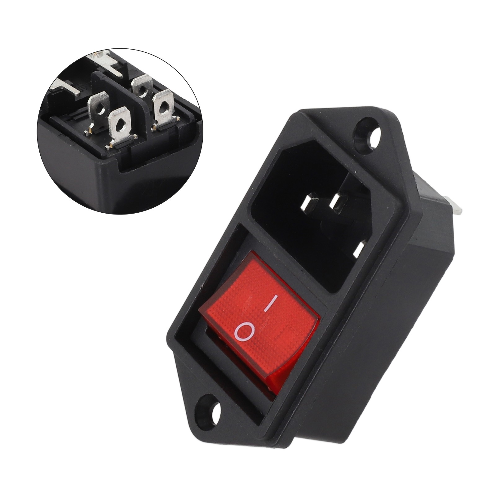 10A 250V IEC Connector Socket with Red Switch for Improved User Experience