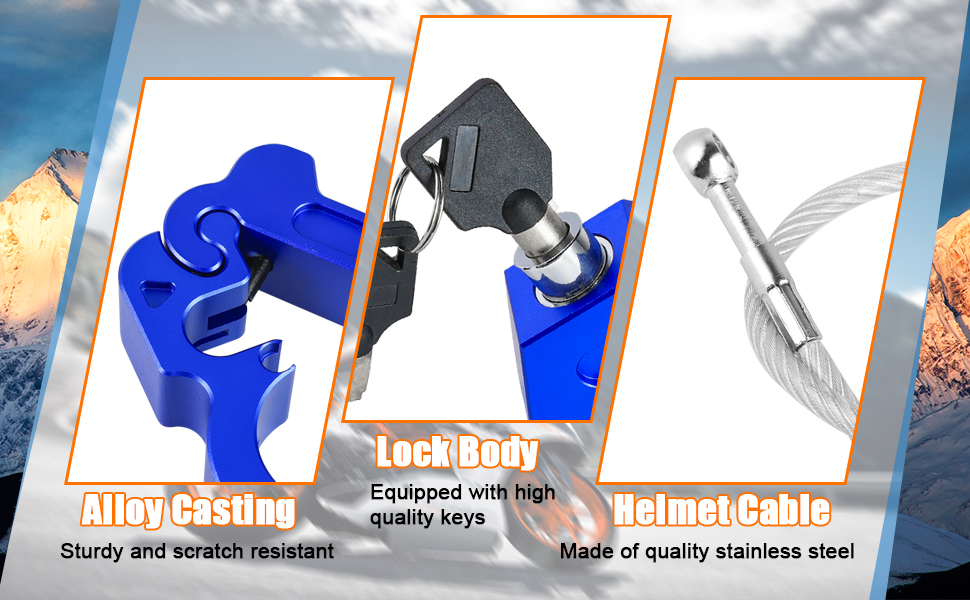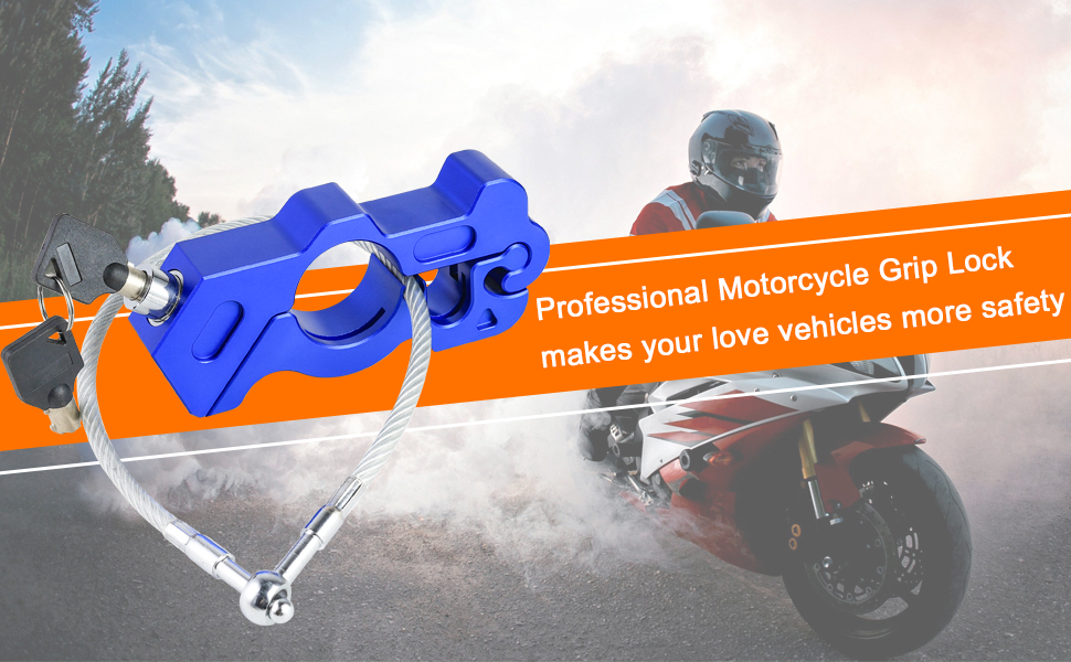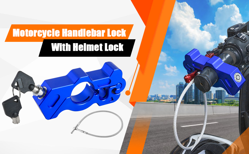 1.This heavy duty motorcycle helmet lock anti theft handlebar grip brake lever lock device fits for Motorbike Sports Bikes Scooter Mopeds ATVs.