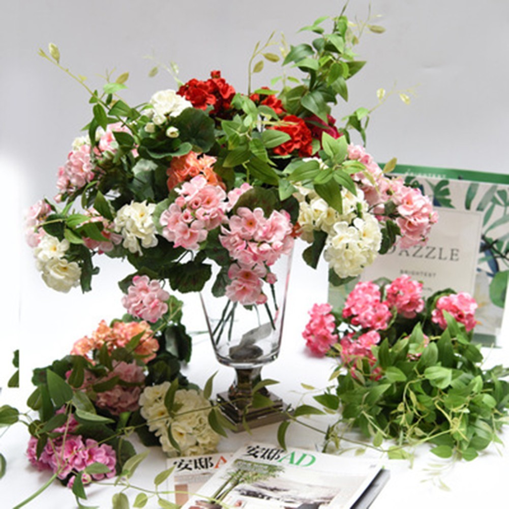 Artificial Geranium Red Pink Flowers Fake Plant Living Room Party Desk Decorate