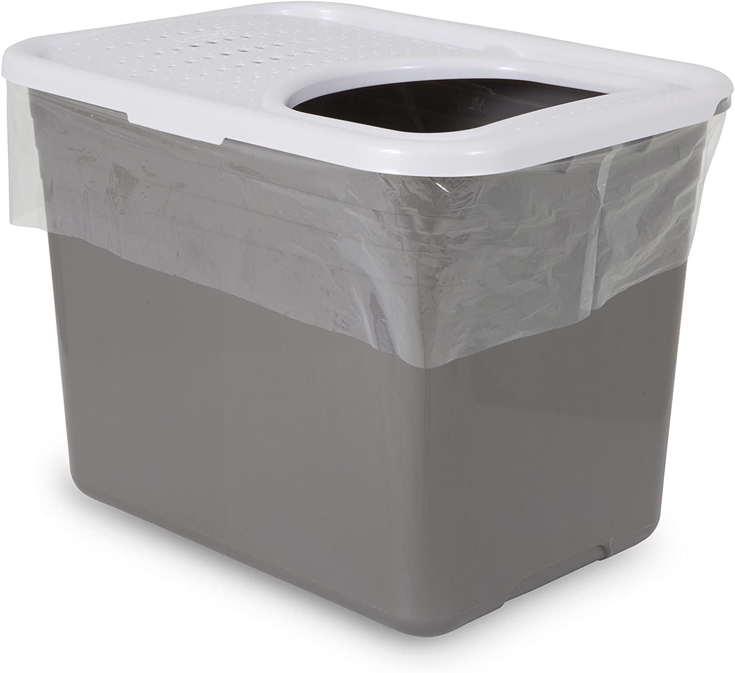FOR TOP ENTRY LITTER PANS: These tear-resistant disposable plastic liners make for easier litter box cleanup removes old litter in one quick step Simply lift the liner from all sides, gather above pan tie