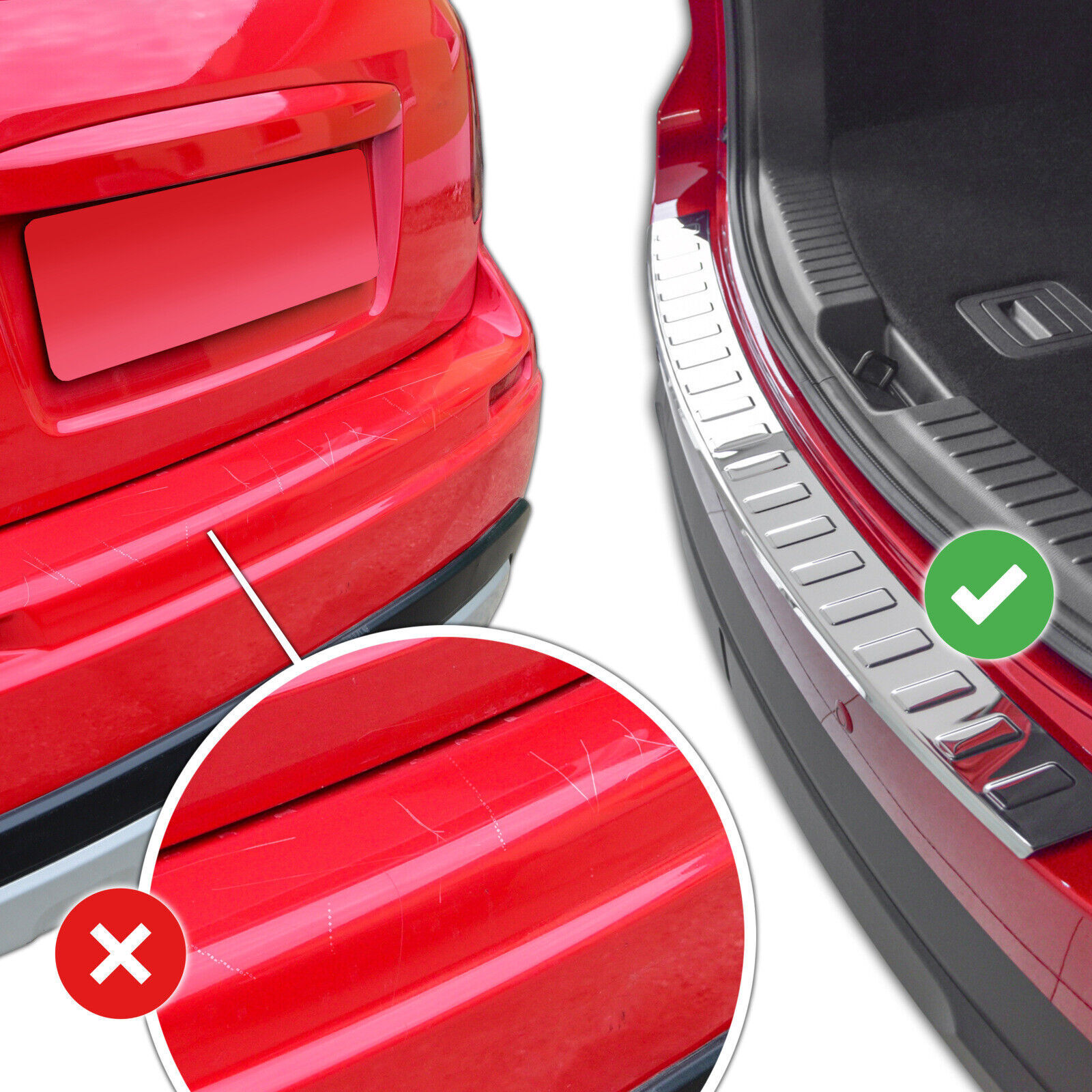 Protect your bumper from dings and scratches while enhancing the appearance of your vehicle. J&J AUTOMOTIVE Bumper protector provides protection against scratches and chips to high impact areas of vehicle paintwork, mainly the rear load area or sill area. Bumper Protector is ideal for providing protection to unmarked paintwork or for masking minor scratches caused by loading and un-loading. It is ideal for owners of new vehicles who want that extra protection for their paintwork in these vulnerable areas, but also don't want to spoil the look of their car/van by adding black rubber to their colour coded bumpers. It is made from Stainless steel for a sophisticated appearance and ultimate durability. Easy installation, Fits into place using the attached automotive adhesive tape. Not only does this item give your vehicle a stylish look, it also helps to protect your bumper from scuffs and scratches.