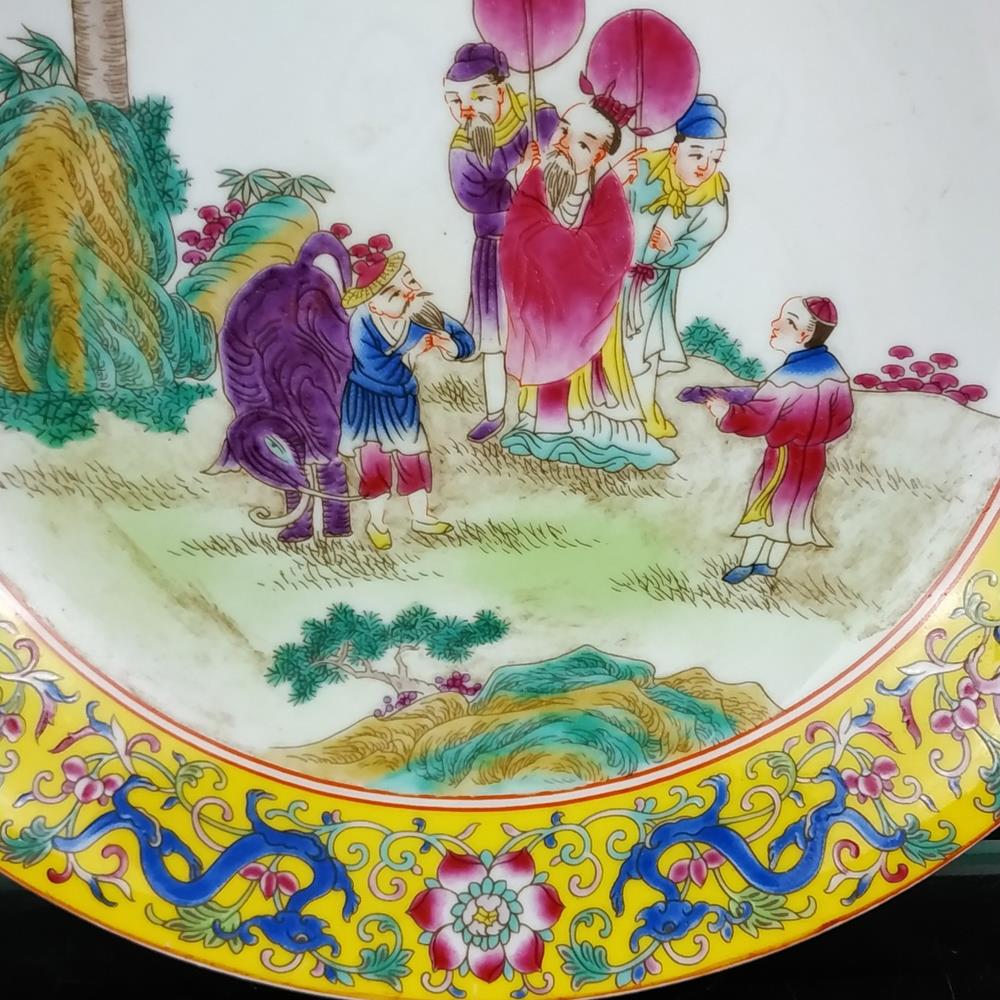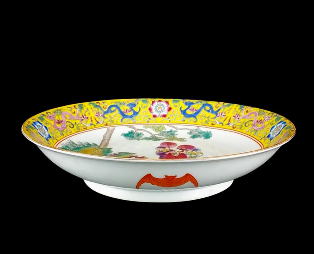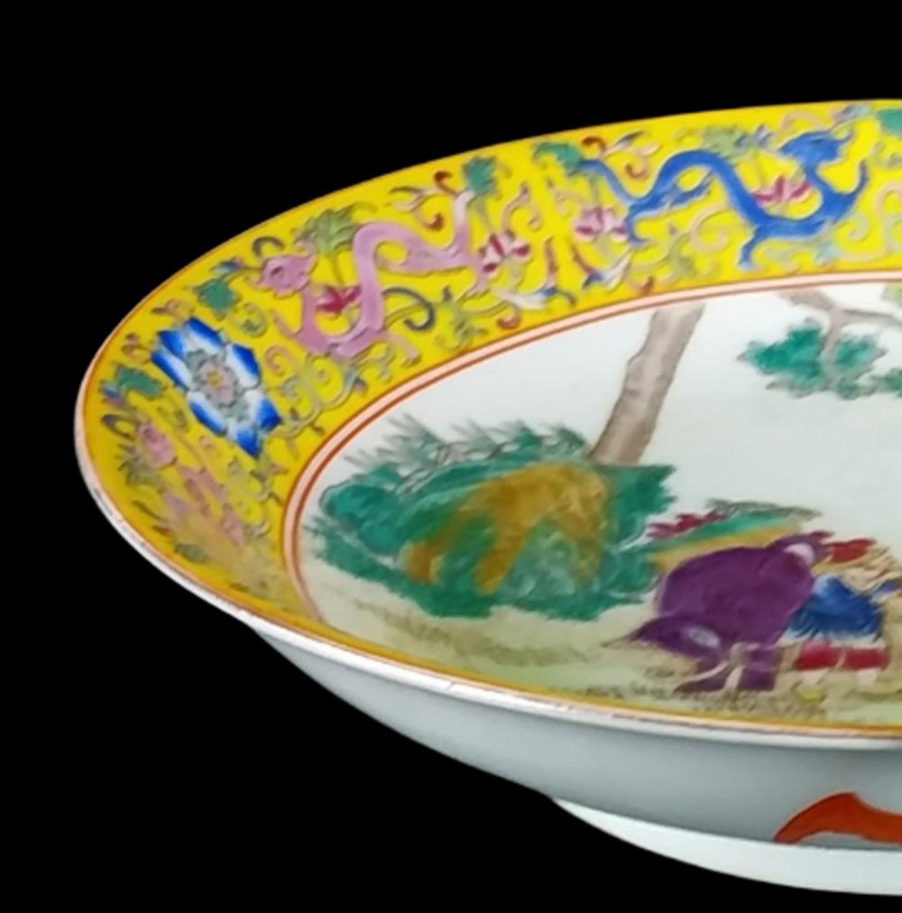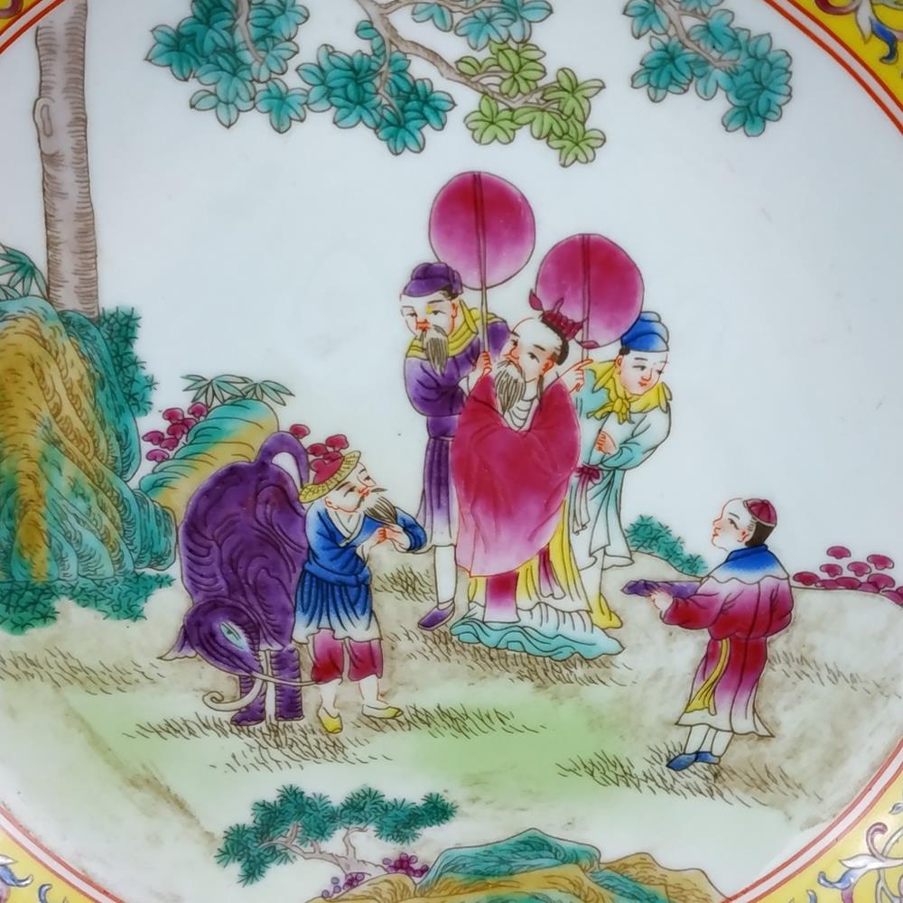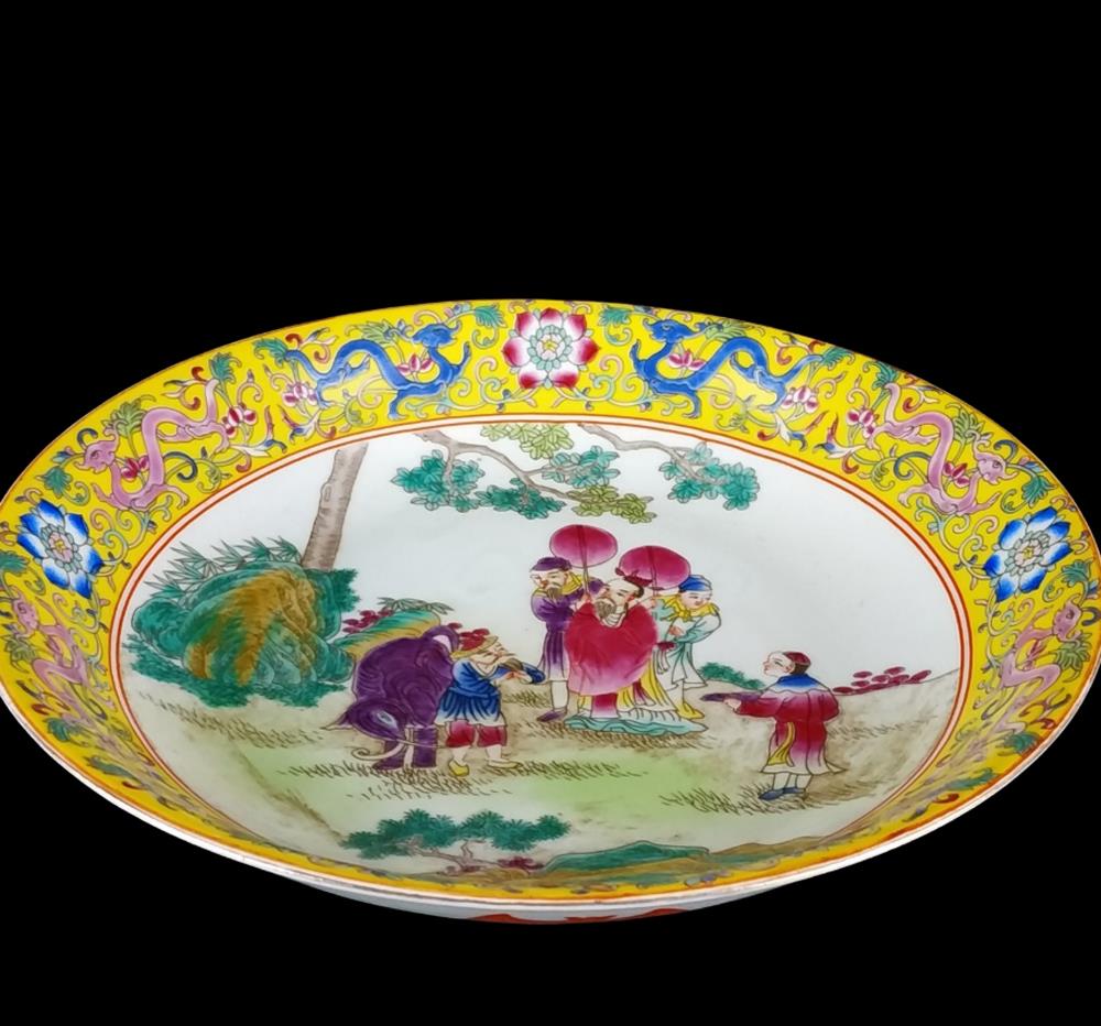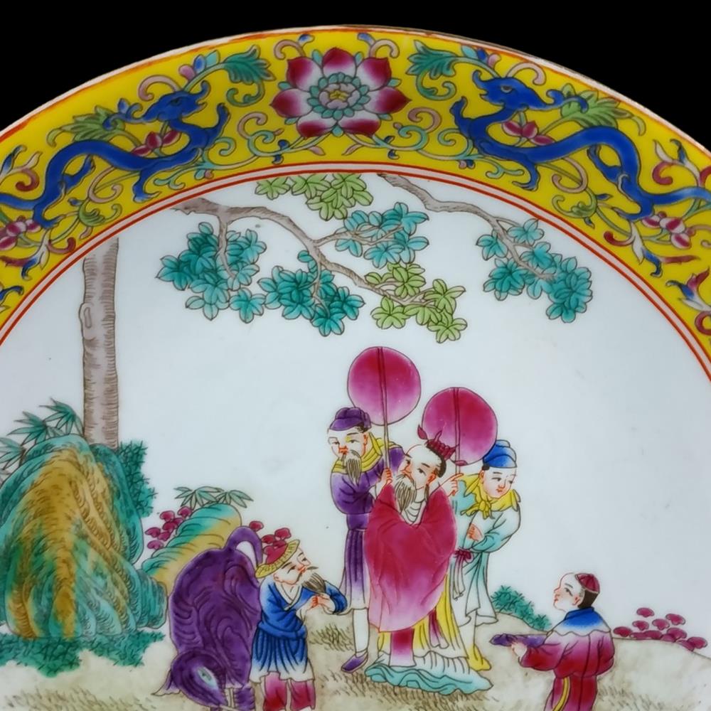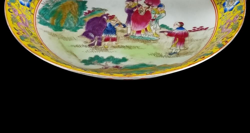 Description - Chinese porcelain dish, decorated with figure, Yongzheng mark on side.