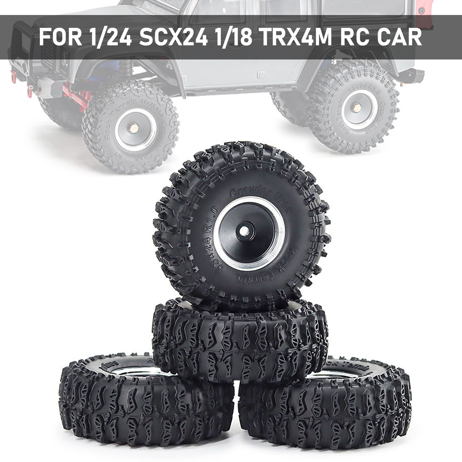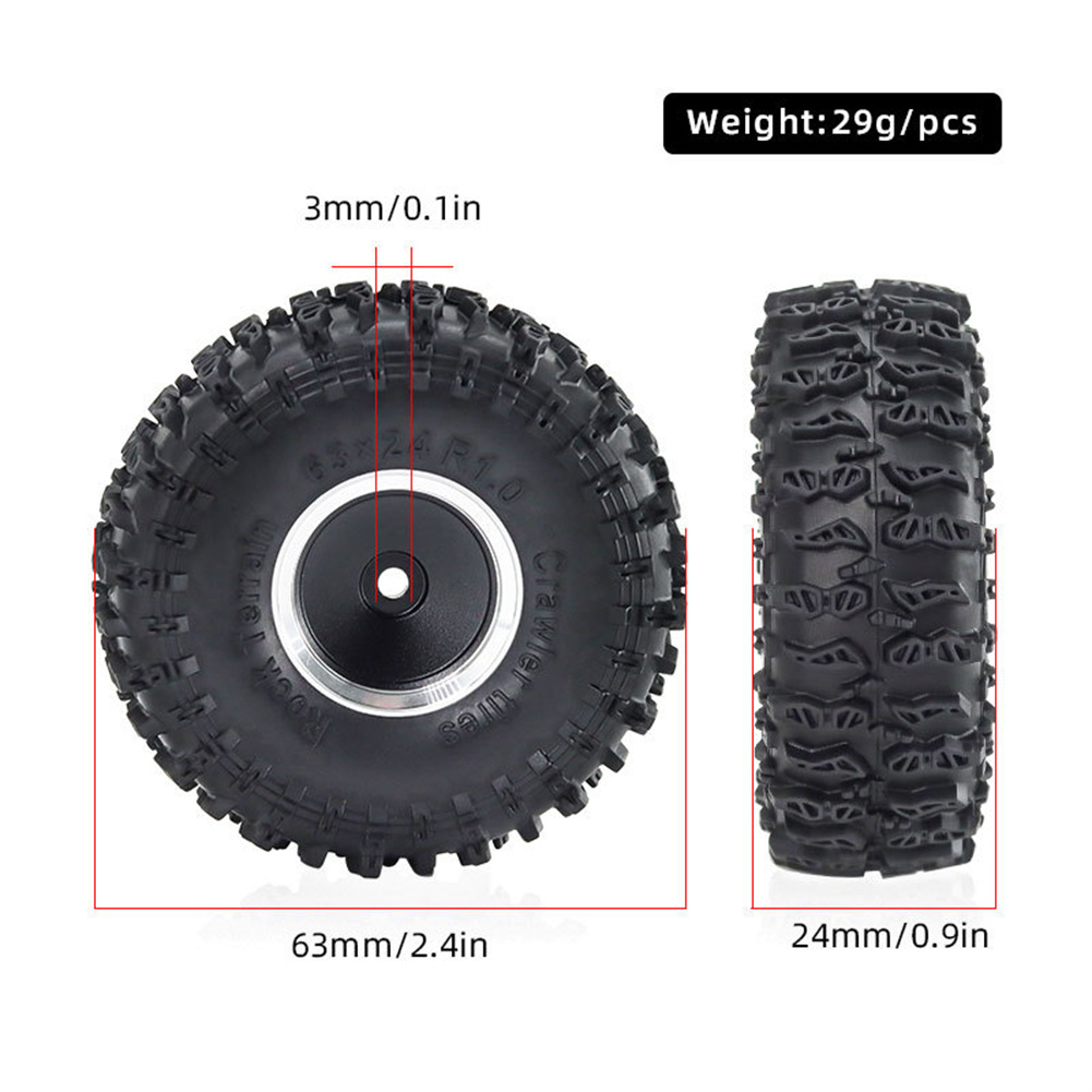 4Pcs/Set 1.0" Aluminum alloy Wheel Rims Tires for 1/24 SCX24 1/18 TRX4M RC Car