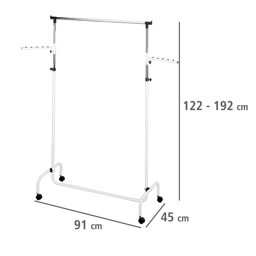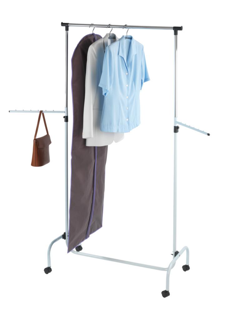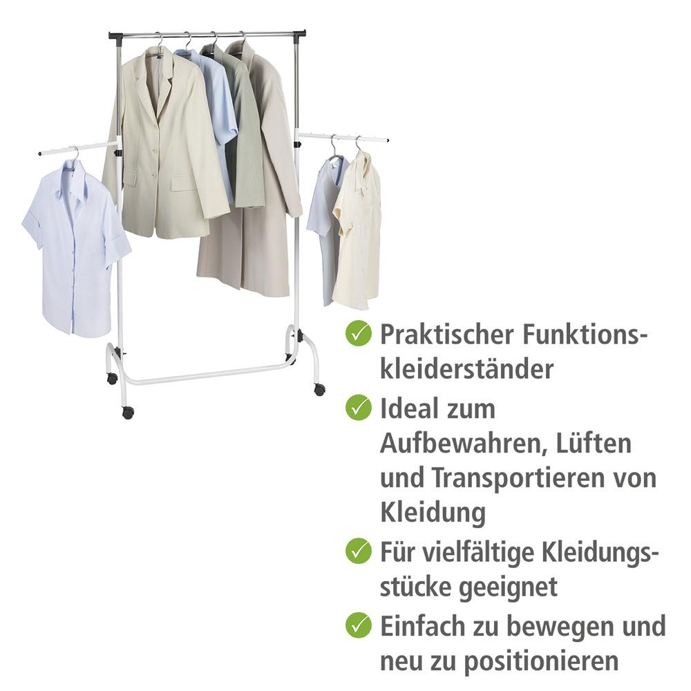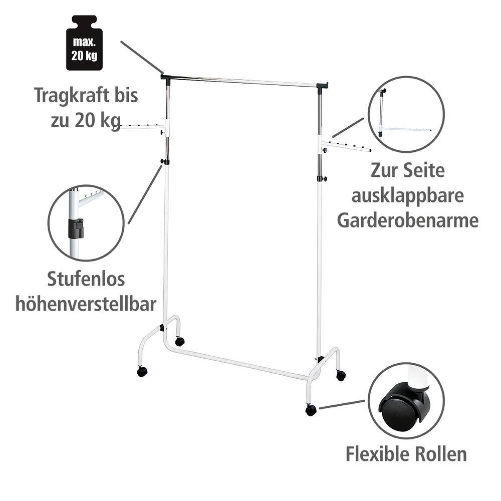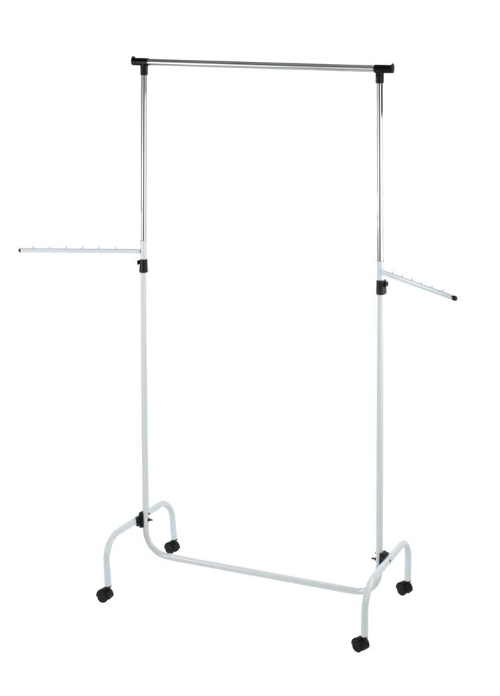 - Zum Aufbewahren von Textilien ·Zwei zur Seite ausklappbare Garderobenarme ·Stufenlos höhenverstellbar von 118-165 cm ·Vier Rollen für leichte Fortbewegung ·Tragkraft bis 20 kg