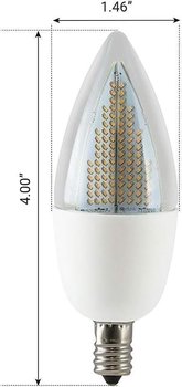 - Design - Euri Lighting's second generation flickering flame bulb is a much sleeker and smaller design in comparison to it's predecessor. Now with a blunt tip shape instead of the previous flame tip shape, the ECA9.5-2120fc is much more compact, meaning a wider range of fixtures it can fit into. Dimensions are 1.46" Wide x 4" Tall.