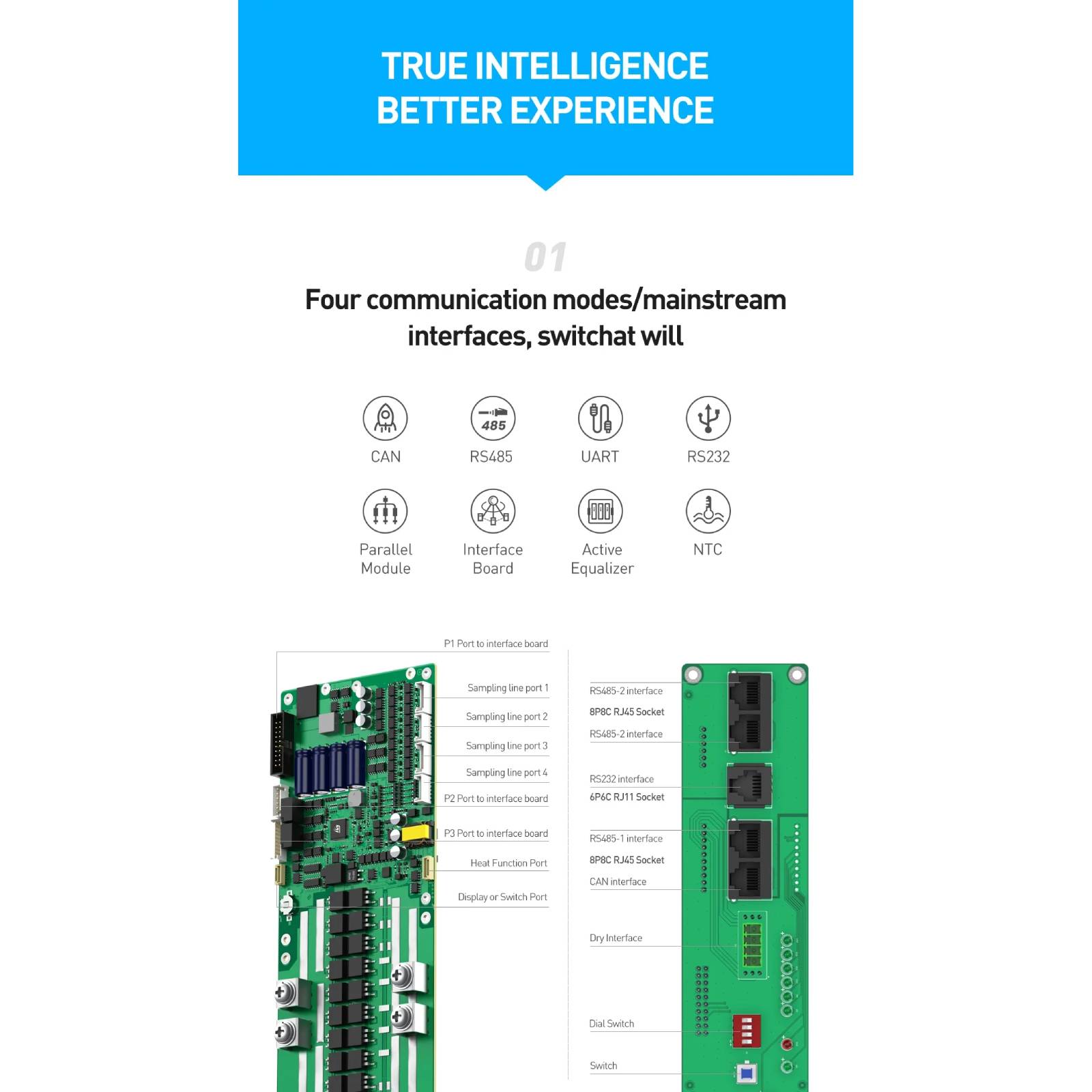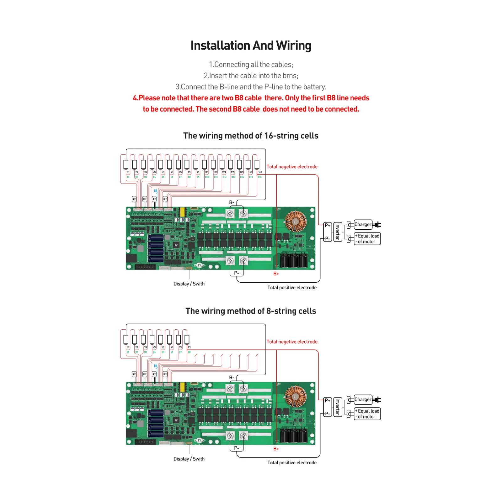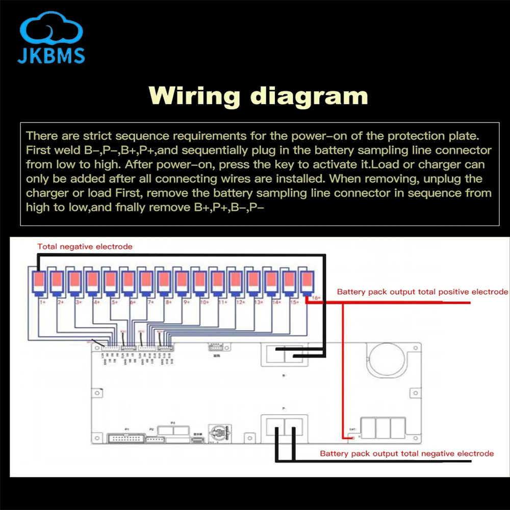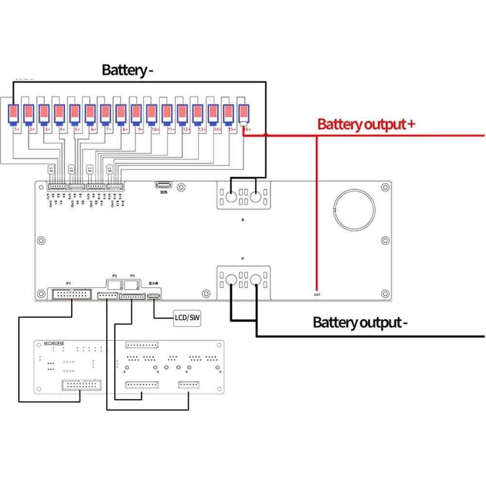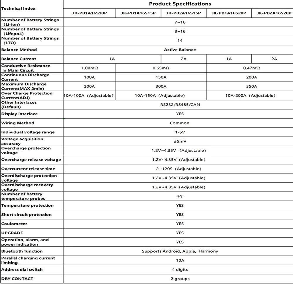 14. Parallel communication: It supports Max. 16 BMSs communication in parallel connection(Only BMS to BMS communication ok, does not support batteries in parallel connection)