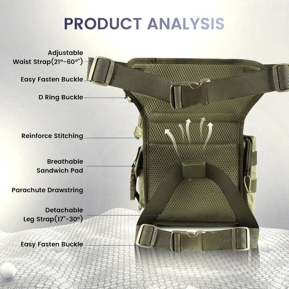 Military-Grade Durability: Crafted with heavy-duty 1000D nylon and reinforced stitching, this leg pack withstands rugged outdoor use, motorcycle rides, and harsh weather, ensuring long-term reliability for adventurers and professionals.